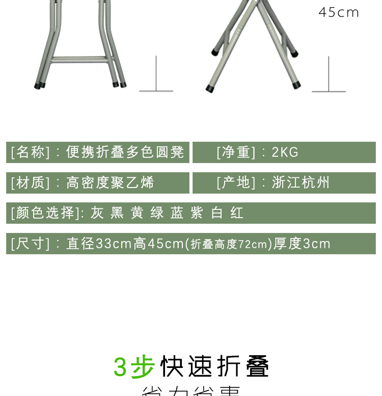 직접 판매 가정용 접이식 의자 휴대용 야외 낚시 의자 가정용 원형 의자 작은 벤치 플라스틱 접이식 의자 L^