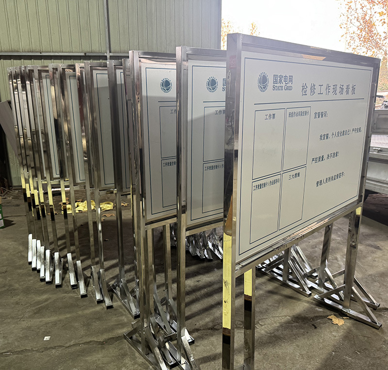 스테인레스 스틸 광고판 전기 안전 경고 파티 건설 작은 커뮤니티 홍보 게시판 학교 문화 포스터 홍보스토어 가기