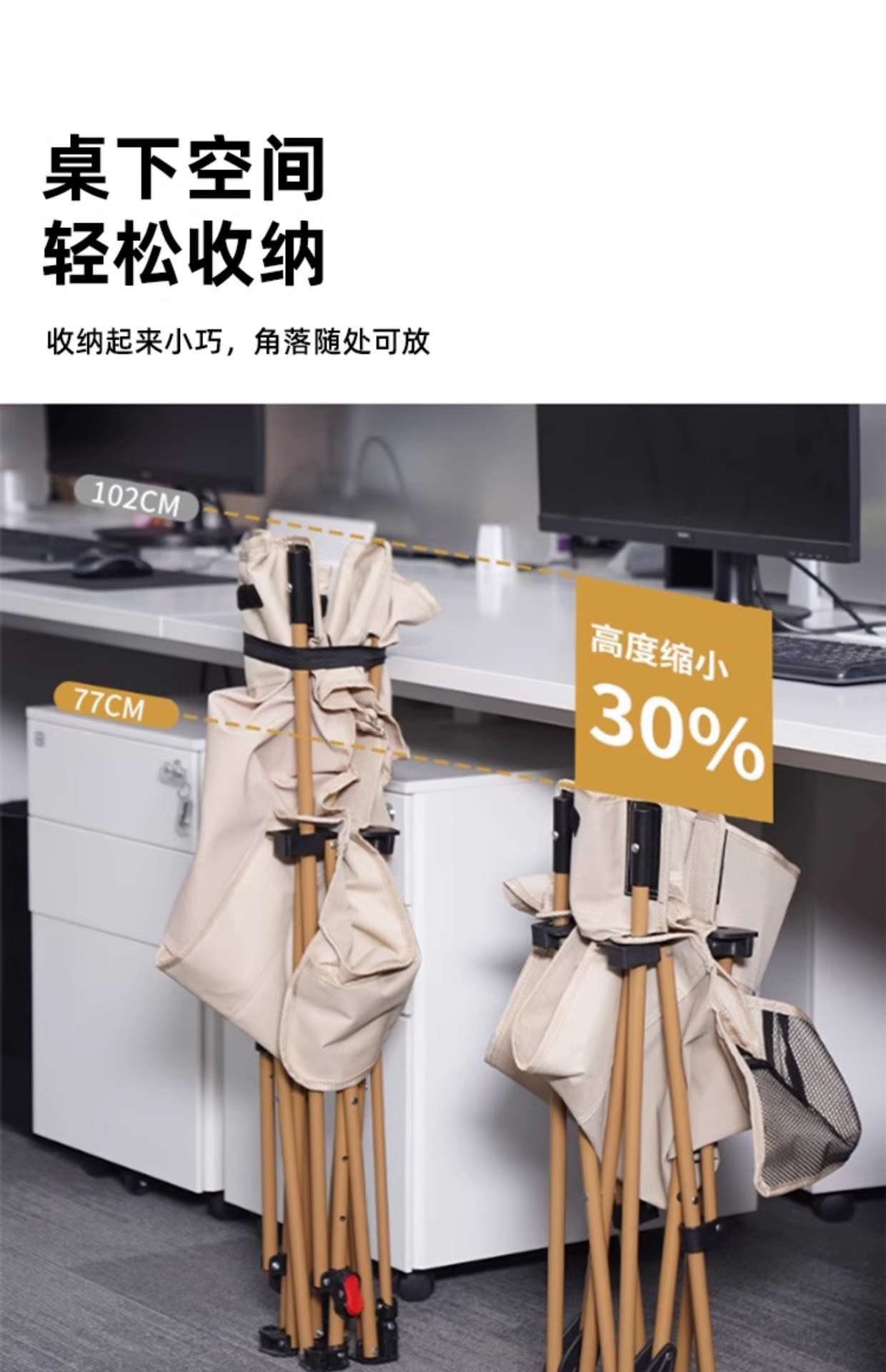 • [작은 공간을 위한 첫 번째 선택] 라이트카키 - 3단 조절 [공간을 차지하지 않는 튜브 슬리브 보강]