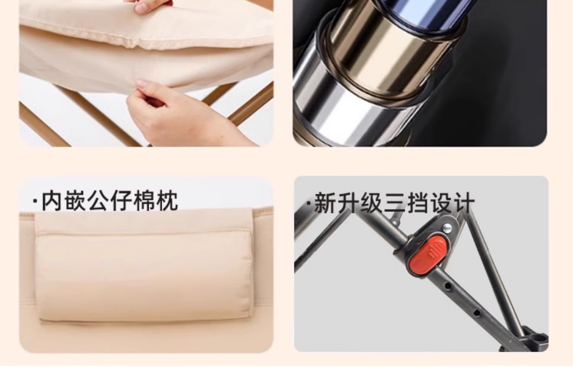 • 2종 특가 [편안한 점심시간 - 라이트카키] 3단계 조절 + 1층 퀼팅 + 탈부착 가능한 다리받침 [편안함과 안정성을 더한 이중 지지력]
