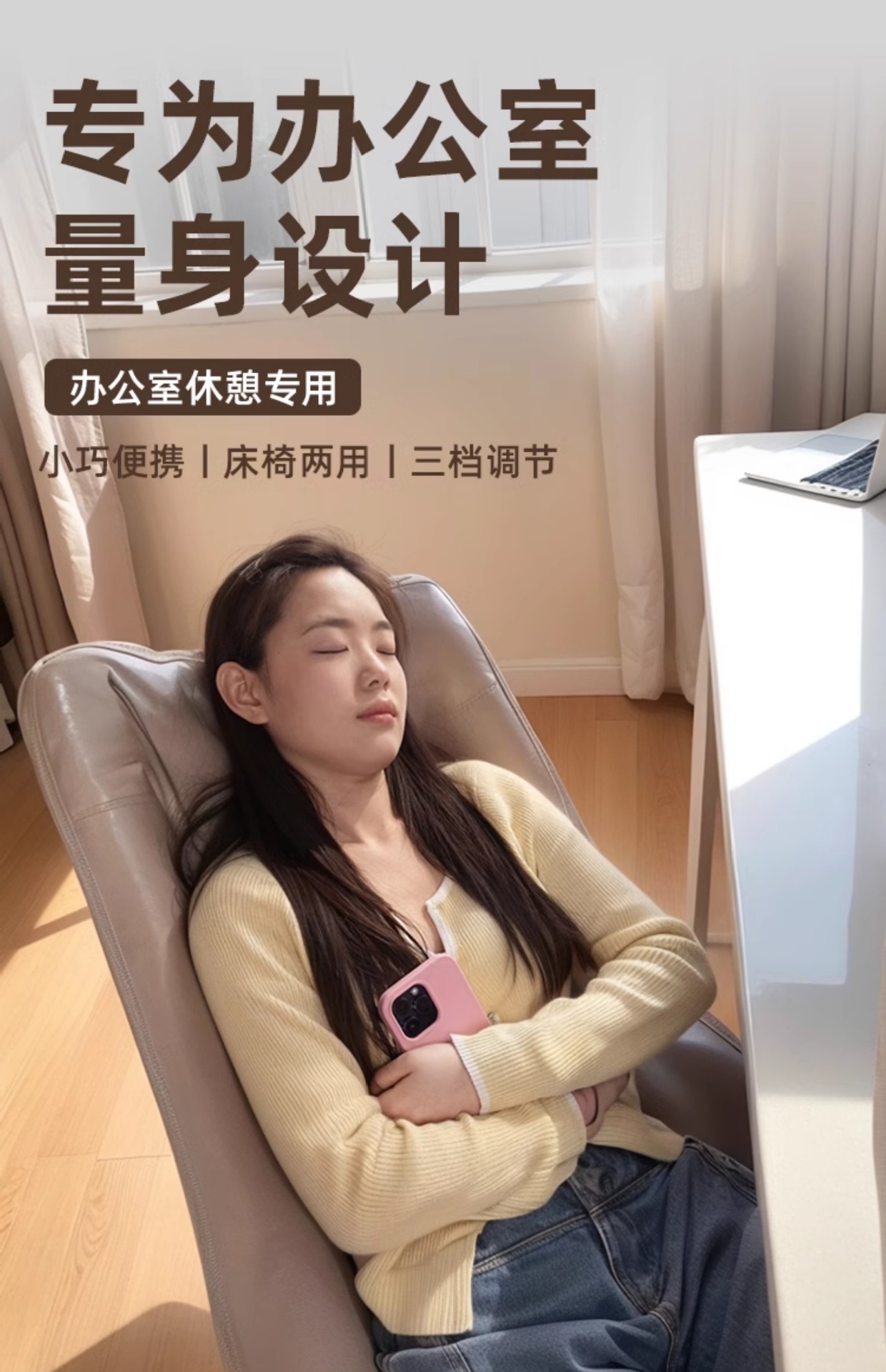 • [편안한 점심시간 - 라이트카키] 3단조절 + 머리받침 + 다리받침 [부드러운 감싸기 및 전복방지 강화]