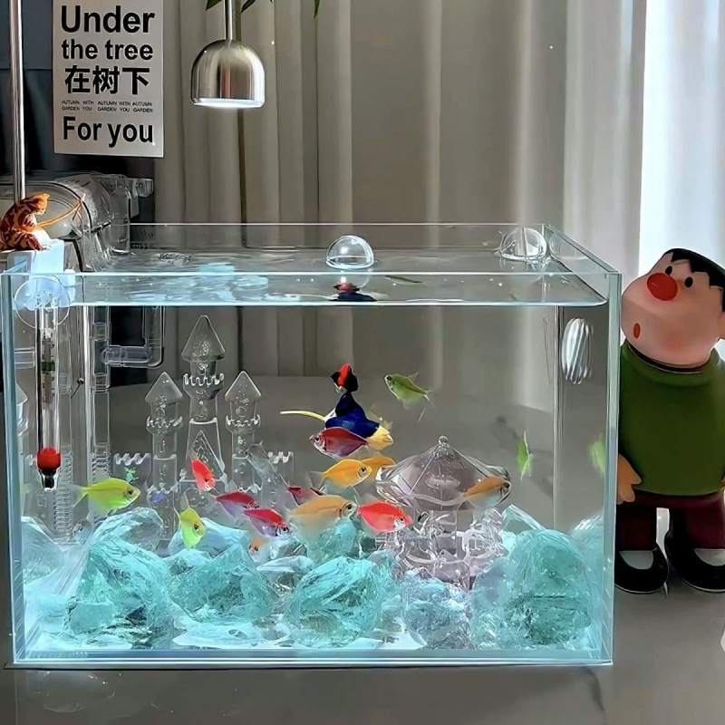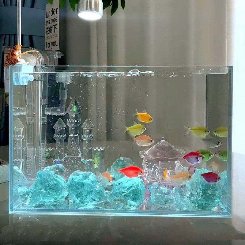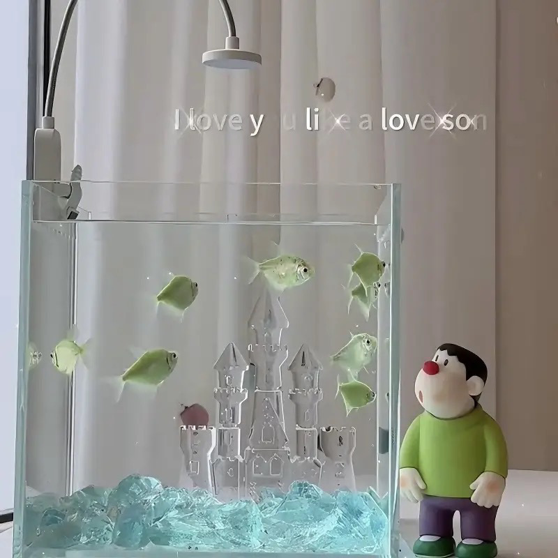 인터넷 연예인 호수 블루 크리스탈 성 회전목마 수조 조경 마이크로 풍경 태국 Betta 장식품스토어 가기