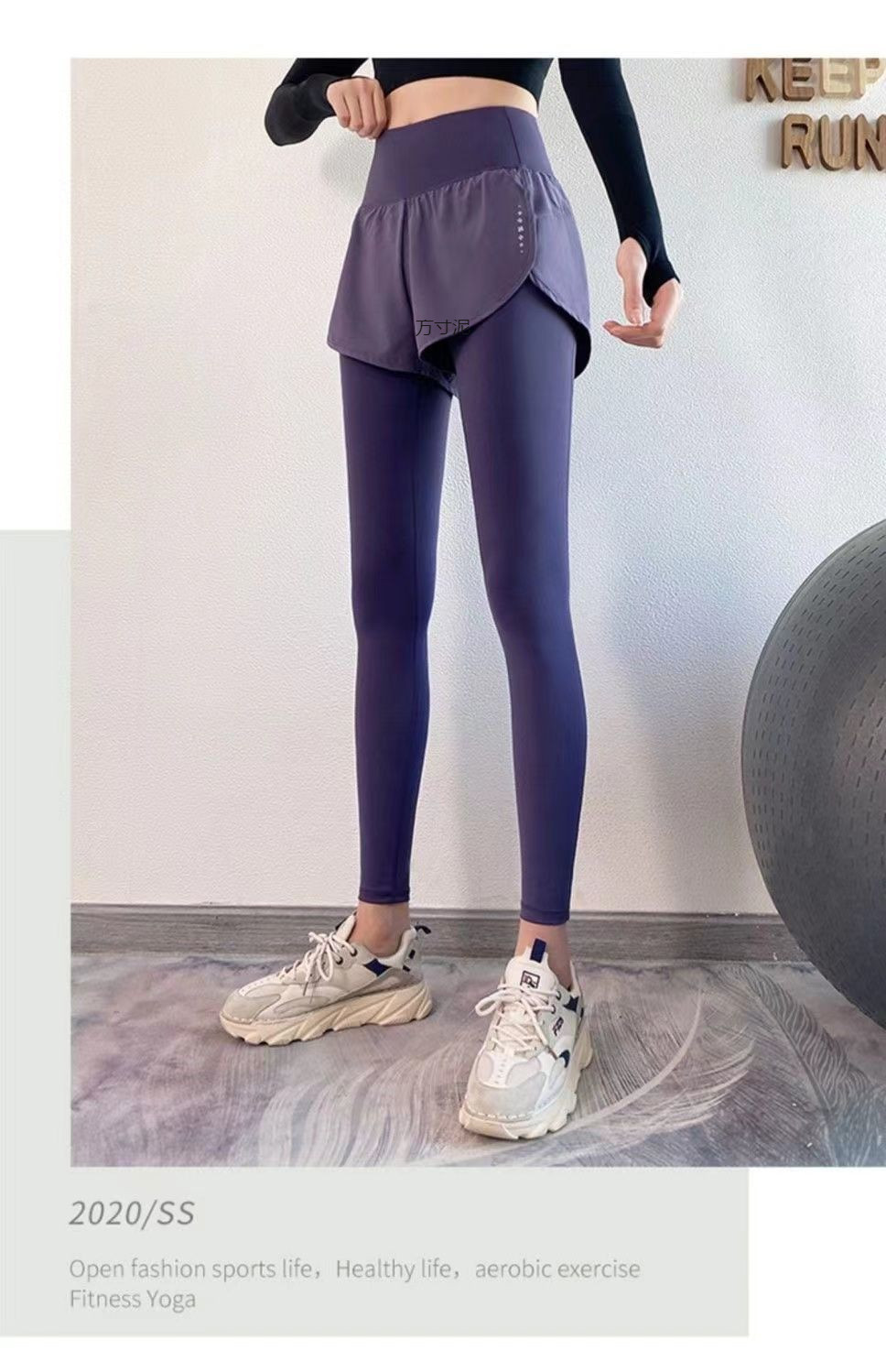 여성용 포켓이 있는 새로운 하이웨이스트 복부 조절 페이크 투피스 피트니스 팬츠, 속건성 런닝 스포츠 팬츠, 타이트한 요가 팬츠스토어 가기