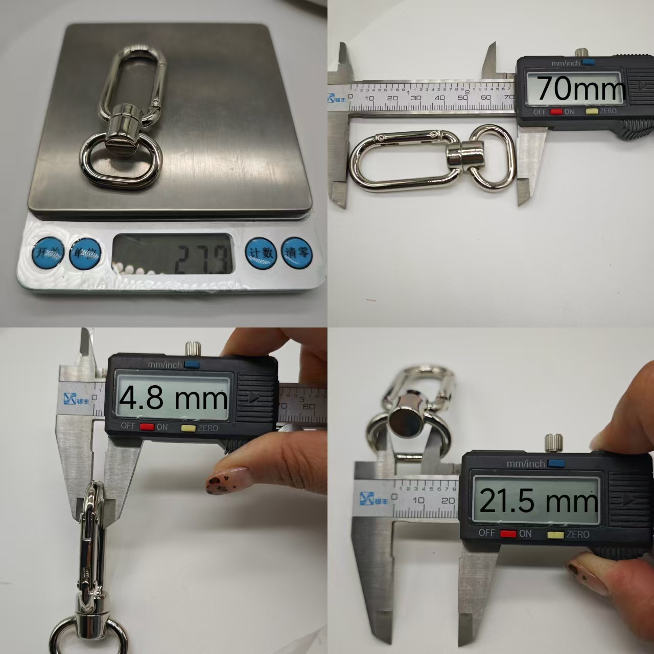 2、挂镀:可实现较厚镀层(20-100μm),耐磨性、耐腐蚀性更强,适合承重或高频使用的五金扣(如锁扣)。