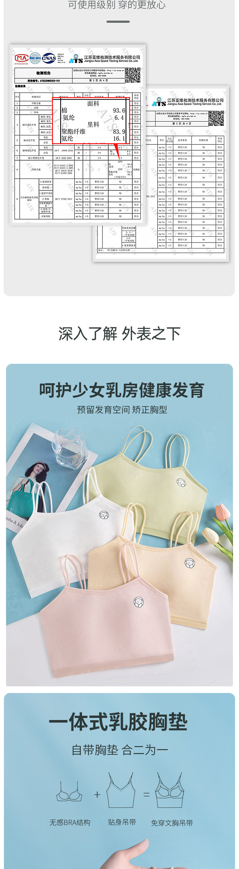 학생 소녀 순면 속옷 튜브 탑 발달 기간 큰 어린이 캐미솔 중학생 고등학생 소녀 브래지어스토어 가기