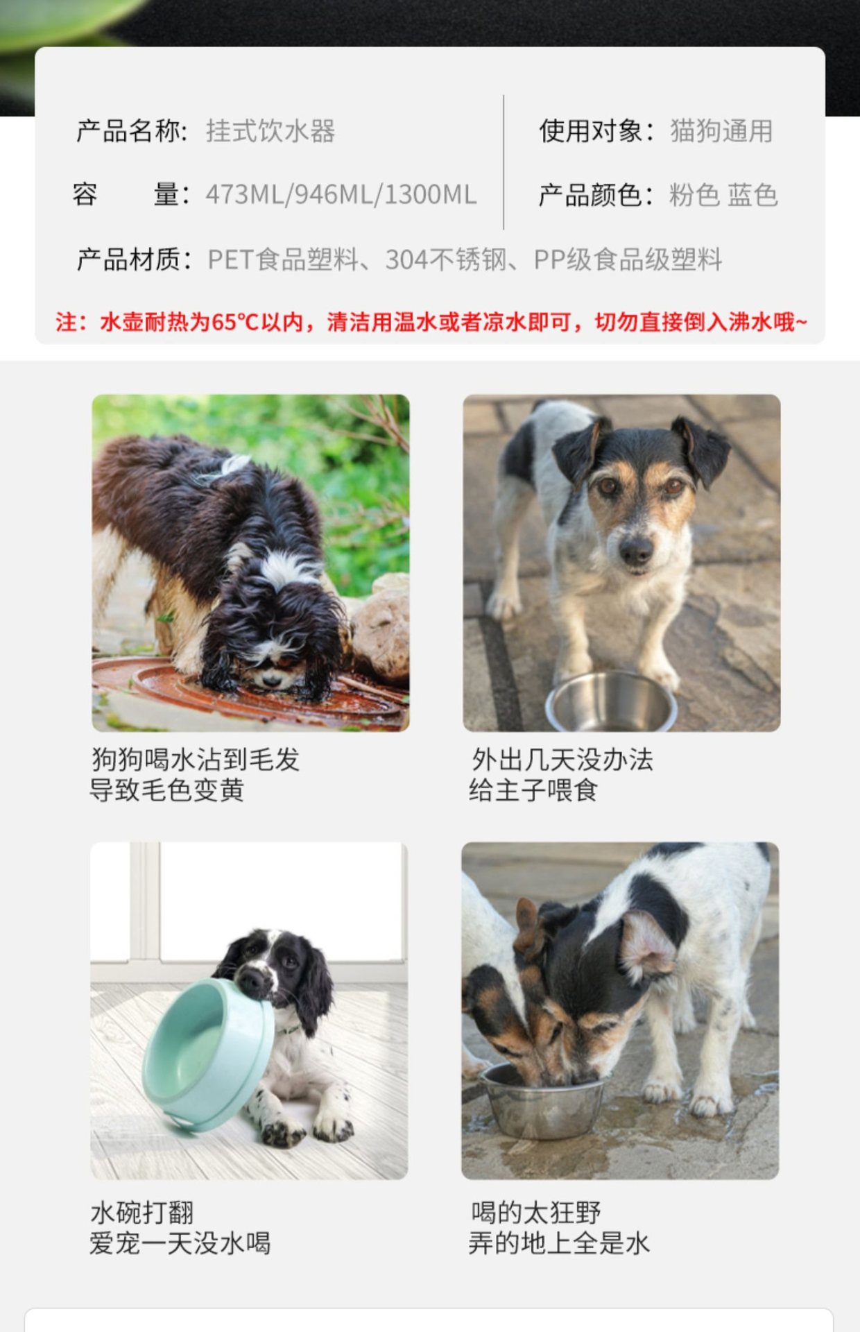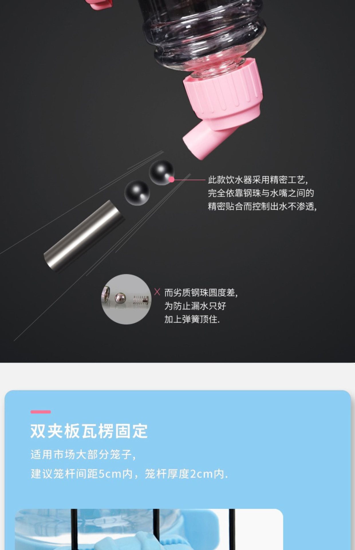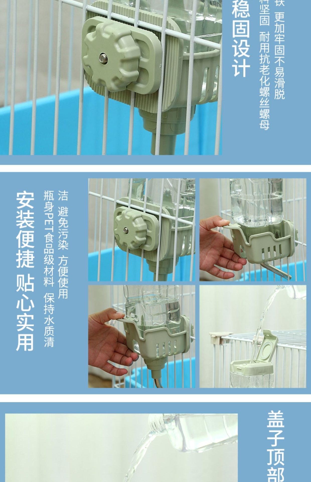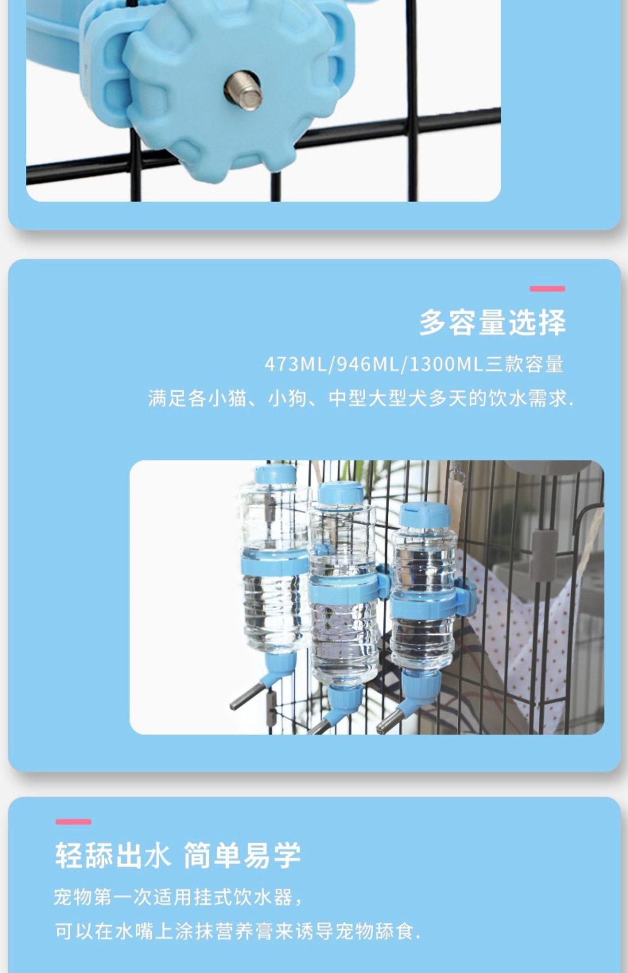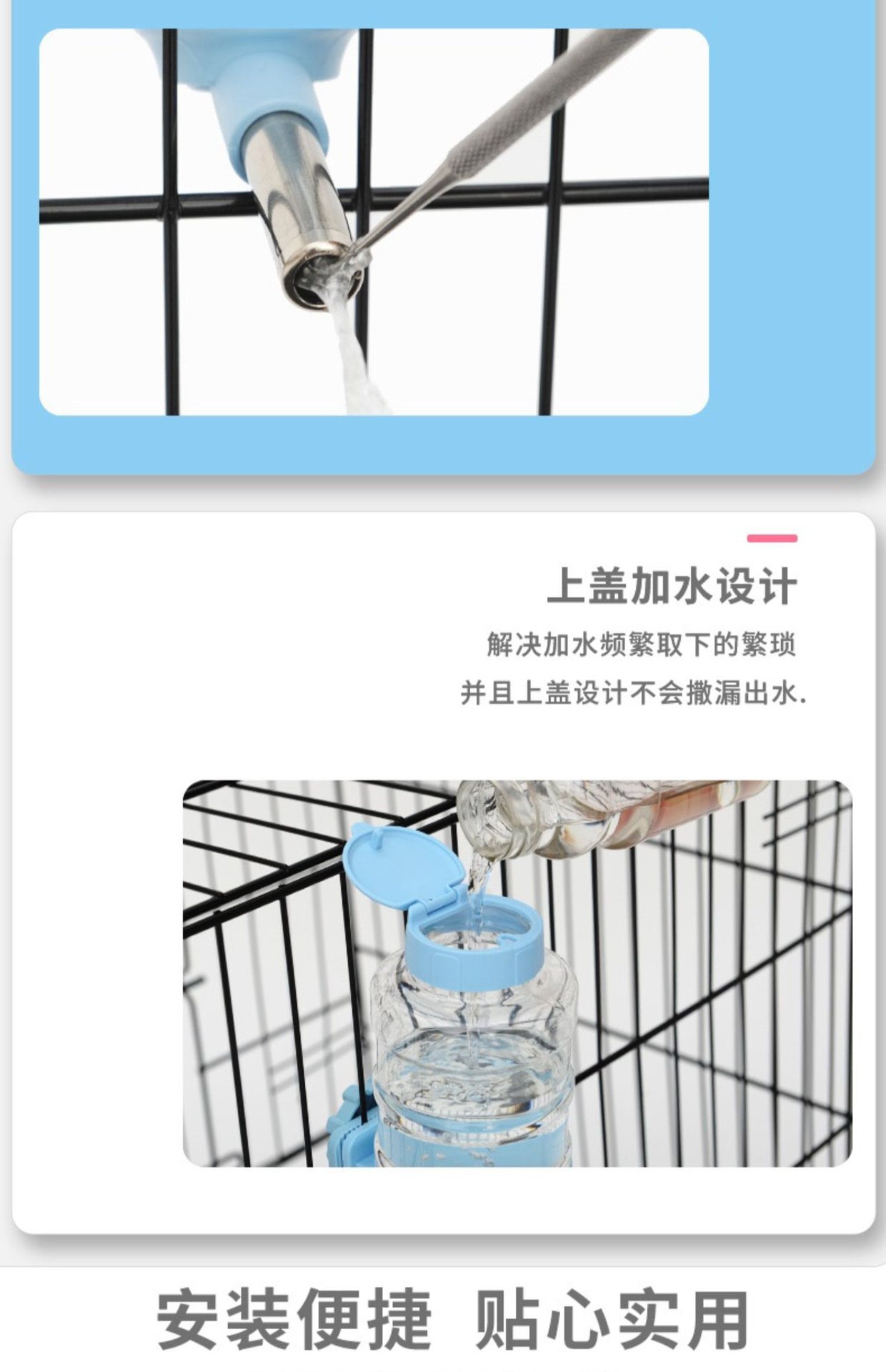 개 식수대, 걸이형 주전자, 애완동물 및 고양이 자동 급수 케이지, 걸이형 애완동물 대용량 토끼 식수대