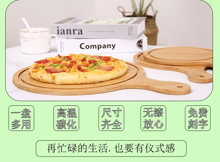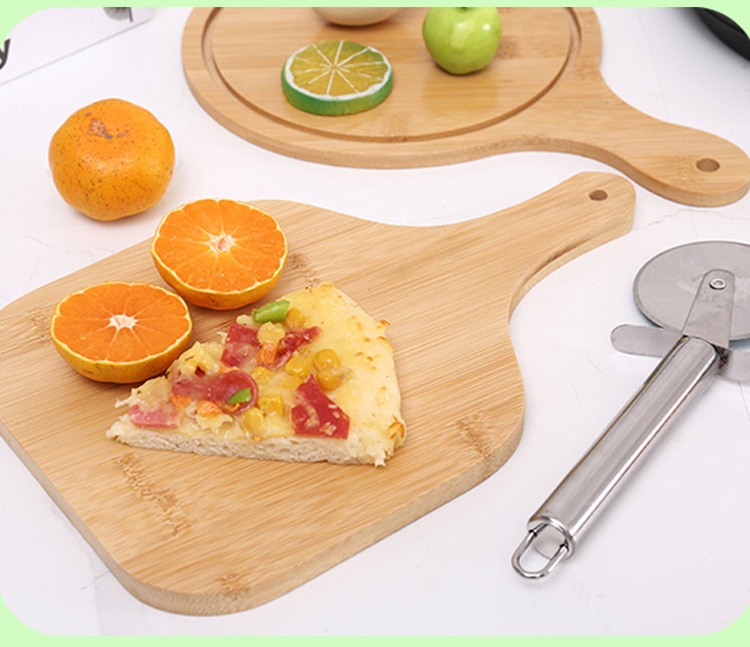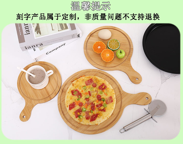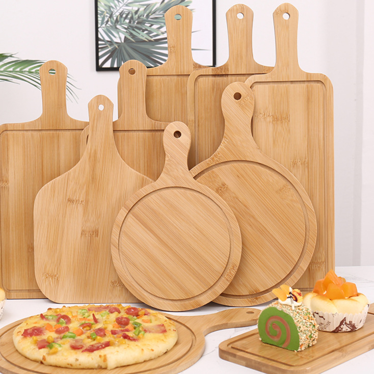 대나무 피자 보드 나무 트레이 서양 음식 절단 빵 스테이크 케이크 단단한 나무 피자 접시 스시 나무 둥근 바닥 트레이