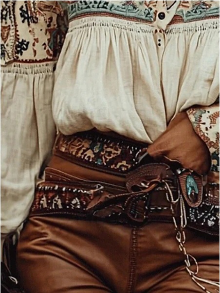 국경 간 유럽과 미국의 복고풍 서양 카우걸 레이디 셔츠 민족 스타일 프린트 보헤미안 탑
