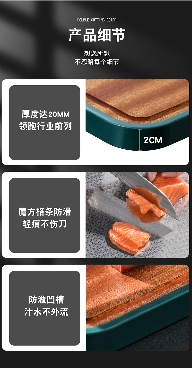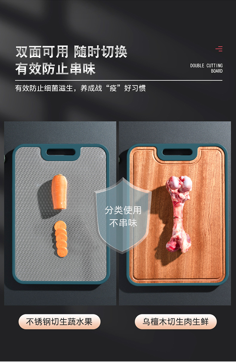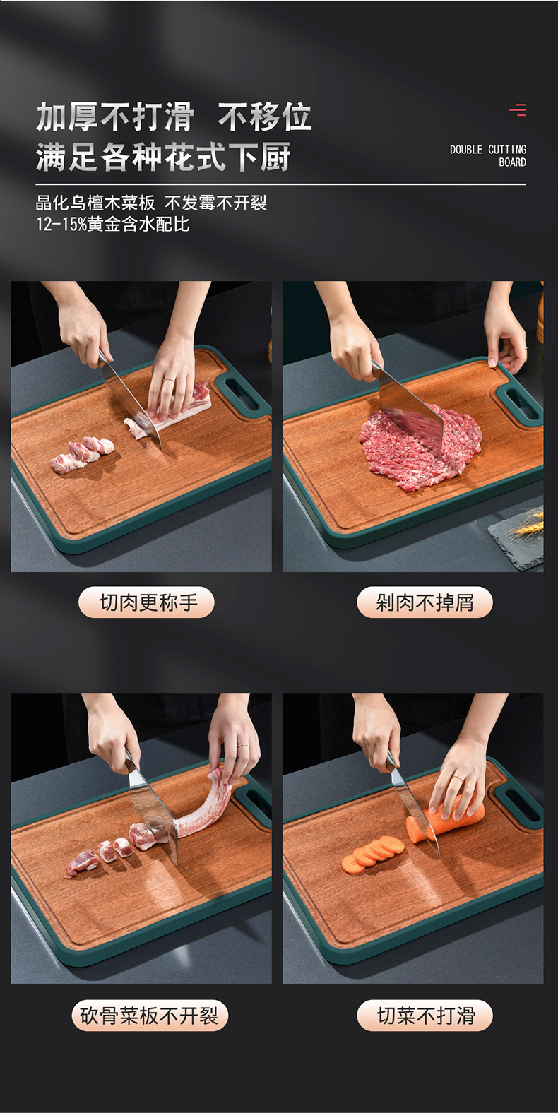녹색 가장자리가 있는 정통 검은색 백단 도마, 항균, 냄새 제거, 미끄럼 방지, 깨지지 않는 식품 등급 항균 양면 도마스토어 가기