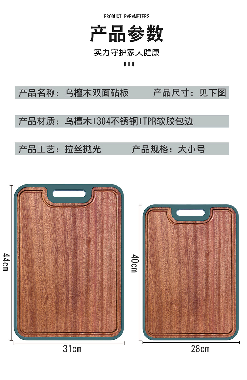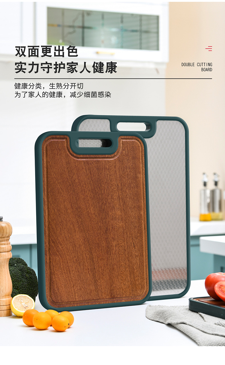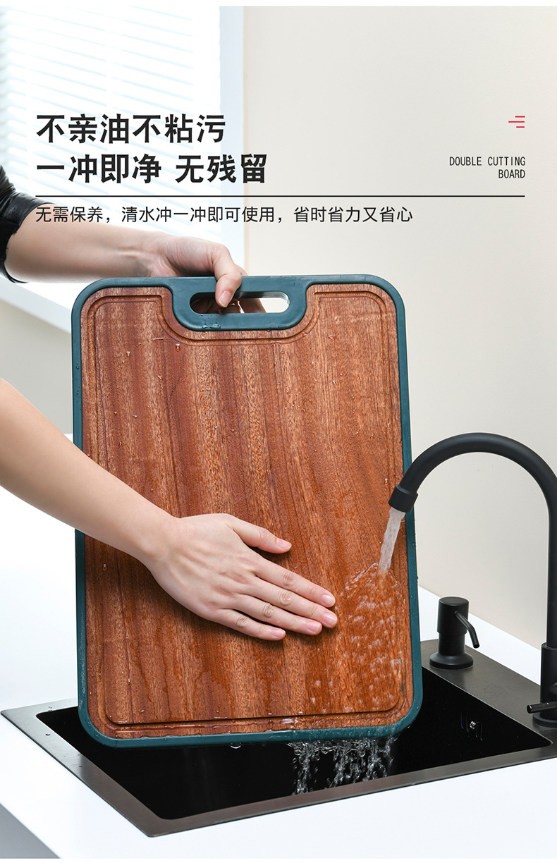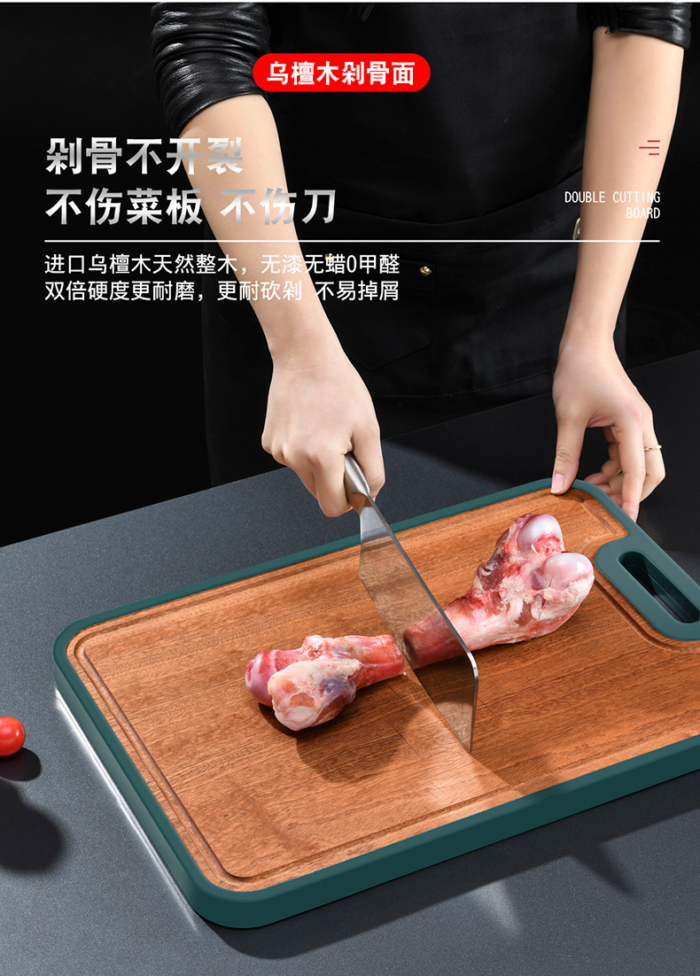 녹색 가장자리가 있는 정통 검은색 백단 도마, 항균, 냄새 제거, 미끄럼 방지, 깨지지 않는 식품 등급 항균 양면 도마