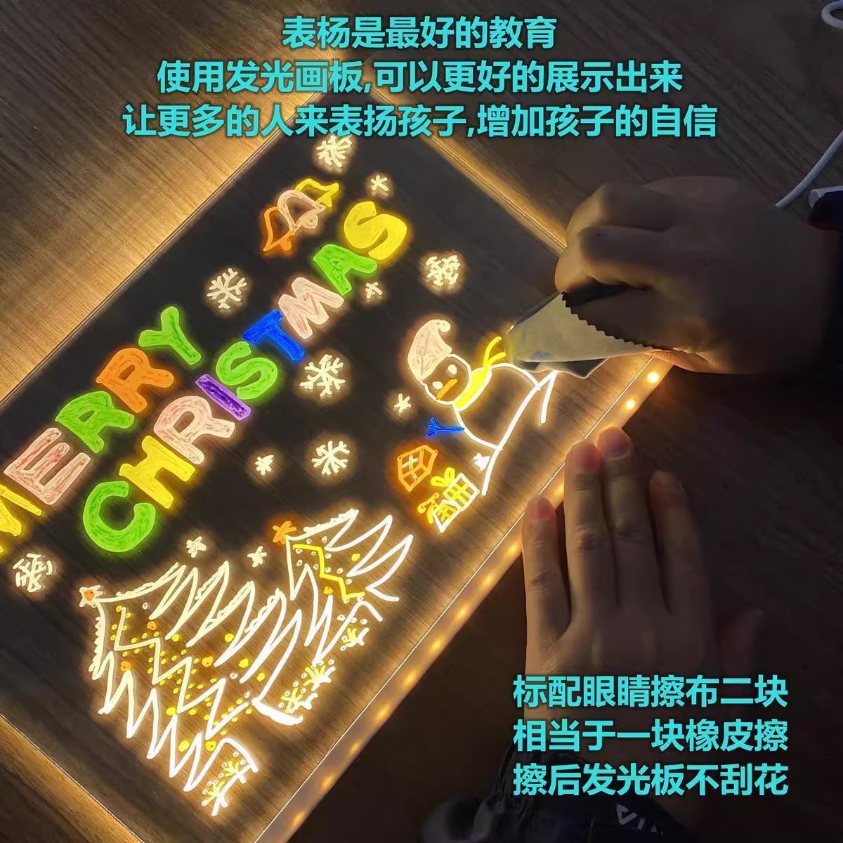 빛나는 드로잉 보드 어린이 장난감 수제 diy 아크릴 드로잉 보드 지울 수있는 형광 보드 손으로 그린 크리 에이 티브 선물