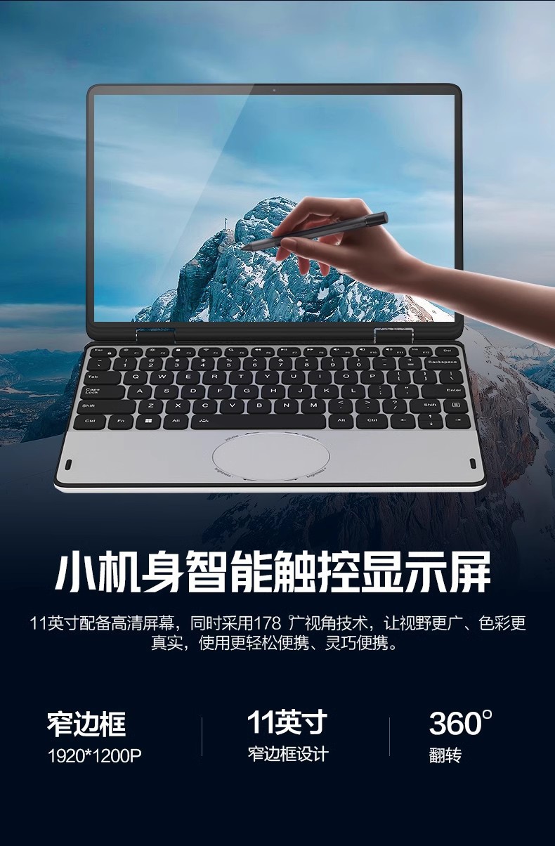 공장 직접 판매 11inch 터치 스크린 노트북 360도 접이식 미니 얇고 가벼운 노트북 국경 간 도매