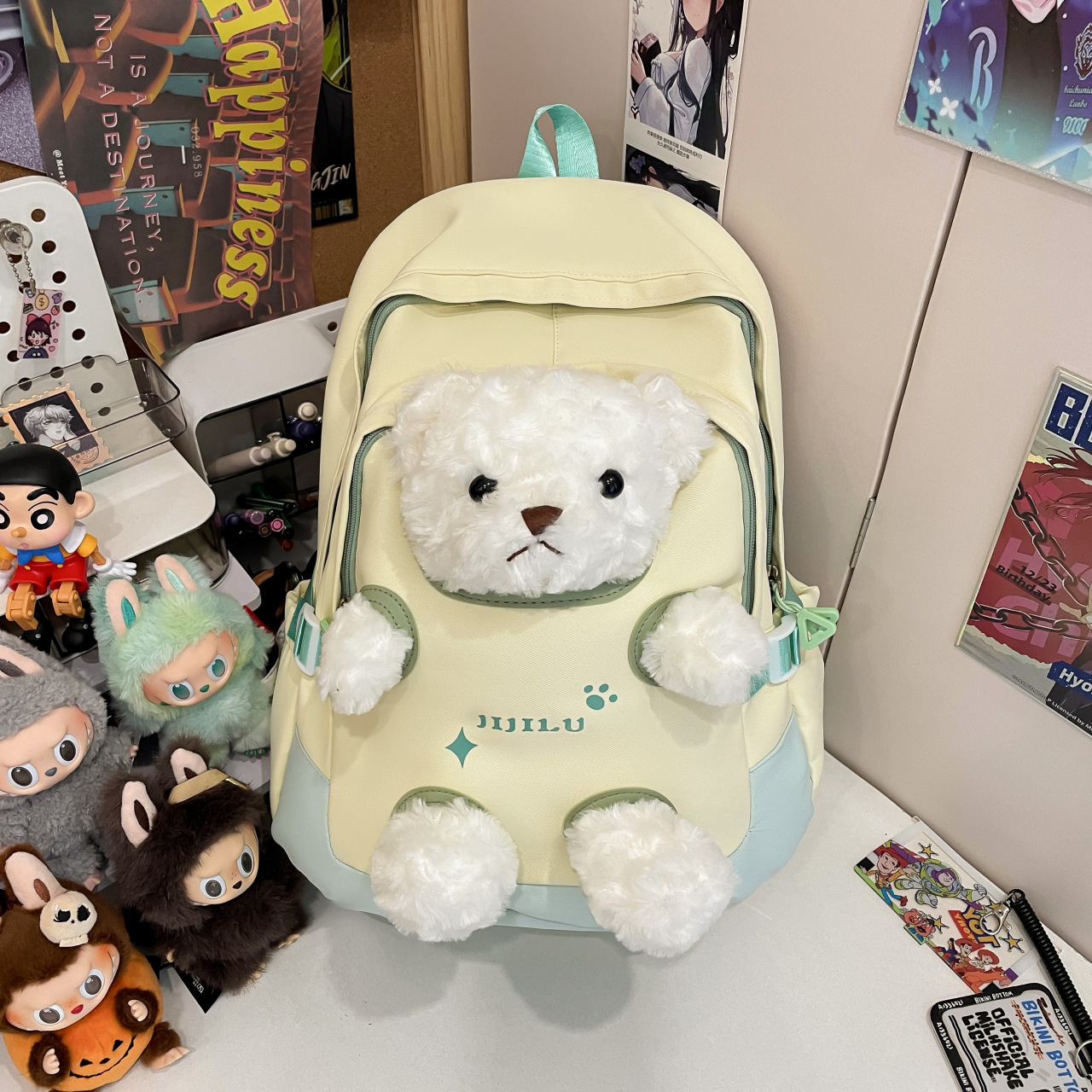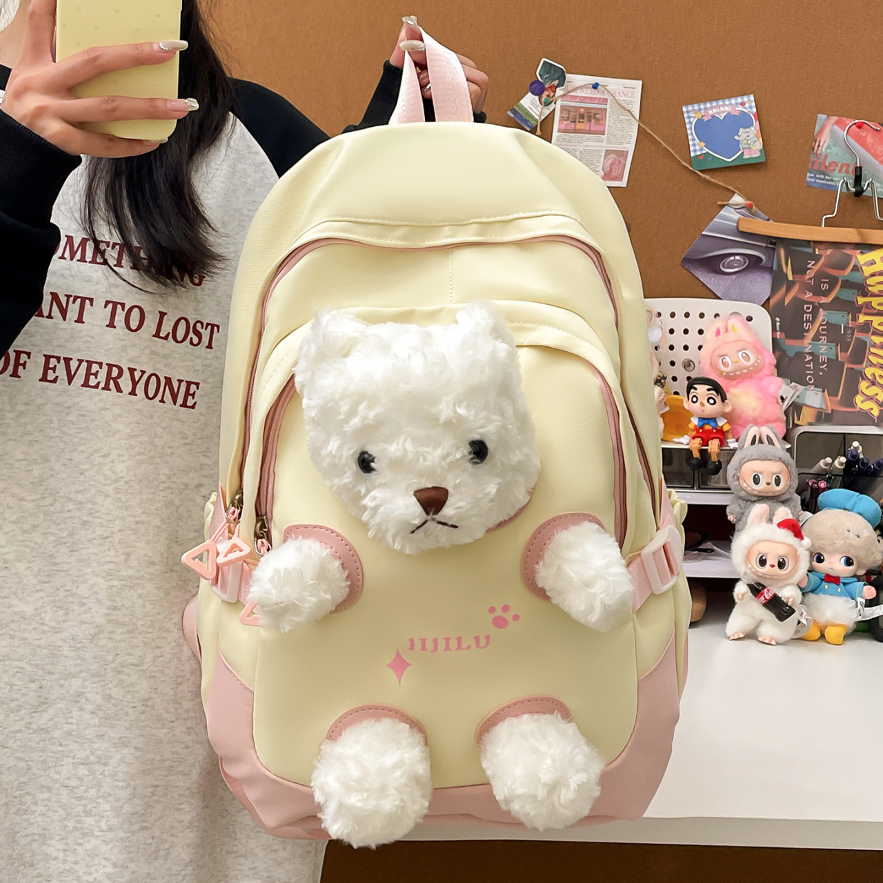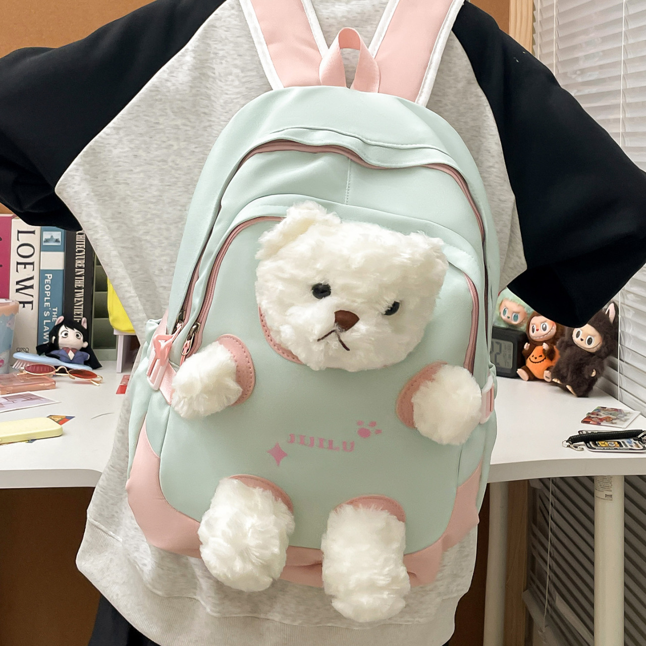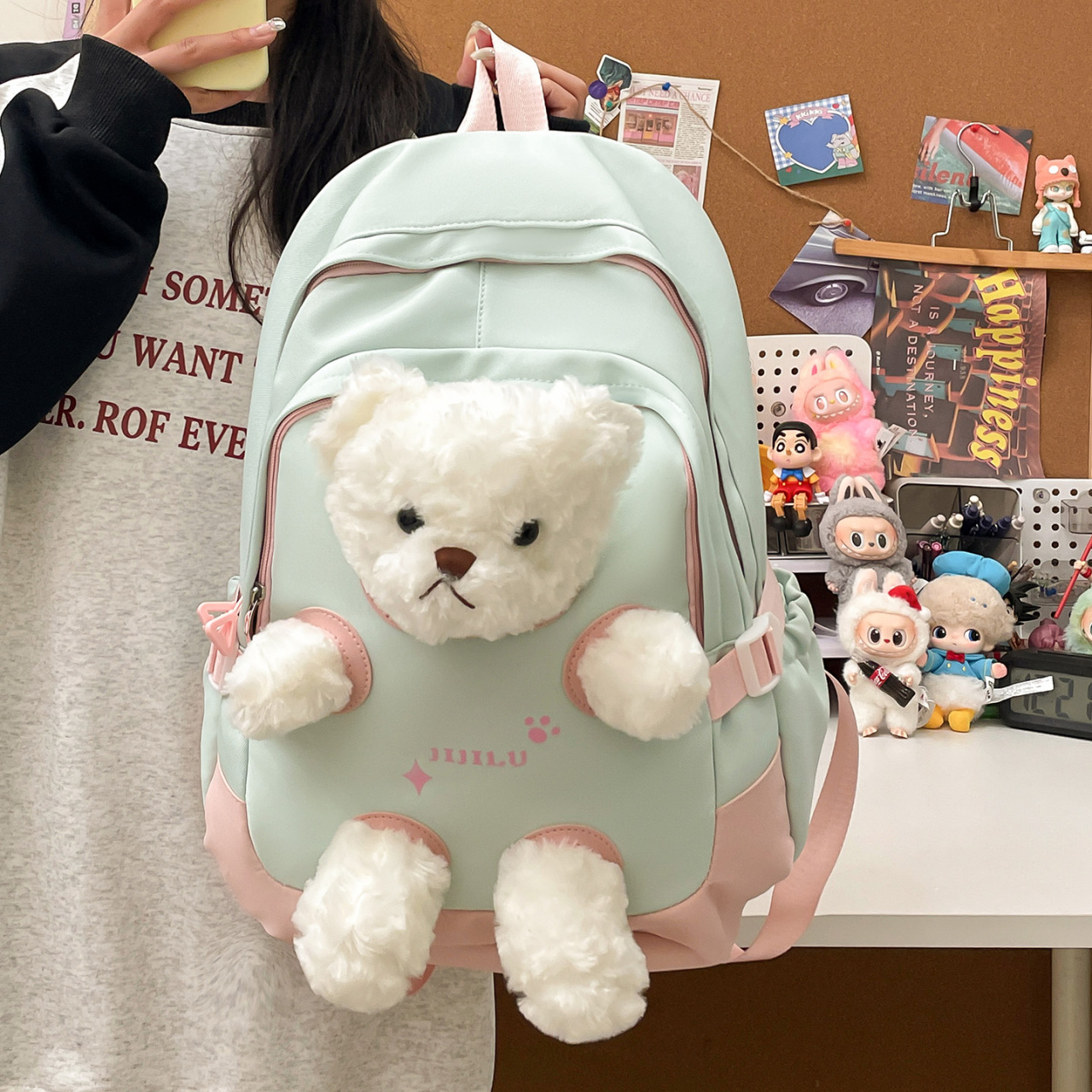 새로운 귀여운 곰 배낭, 고급스러운 만화 봉제 인형 학교 가방, 여자 중학생 학교 가방