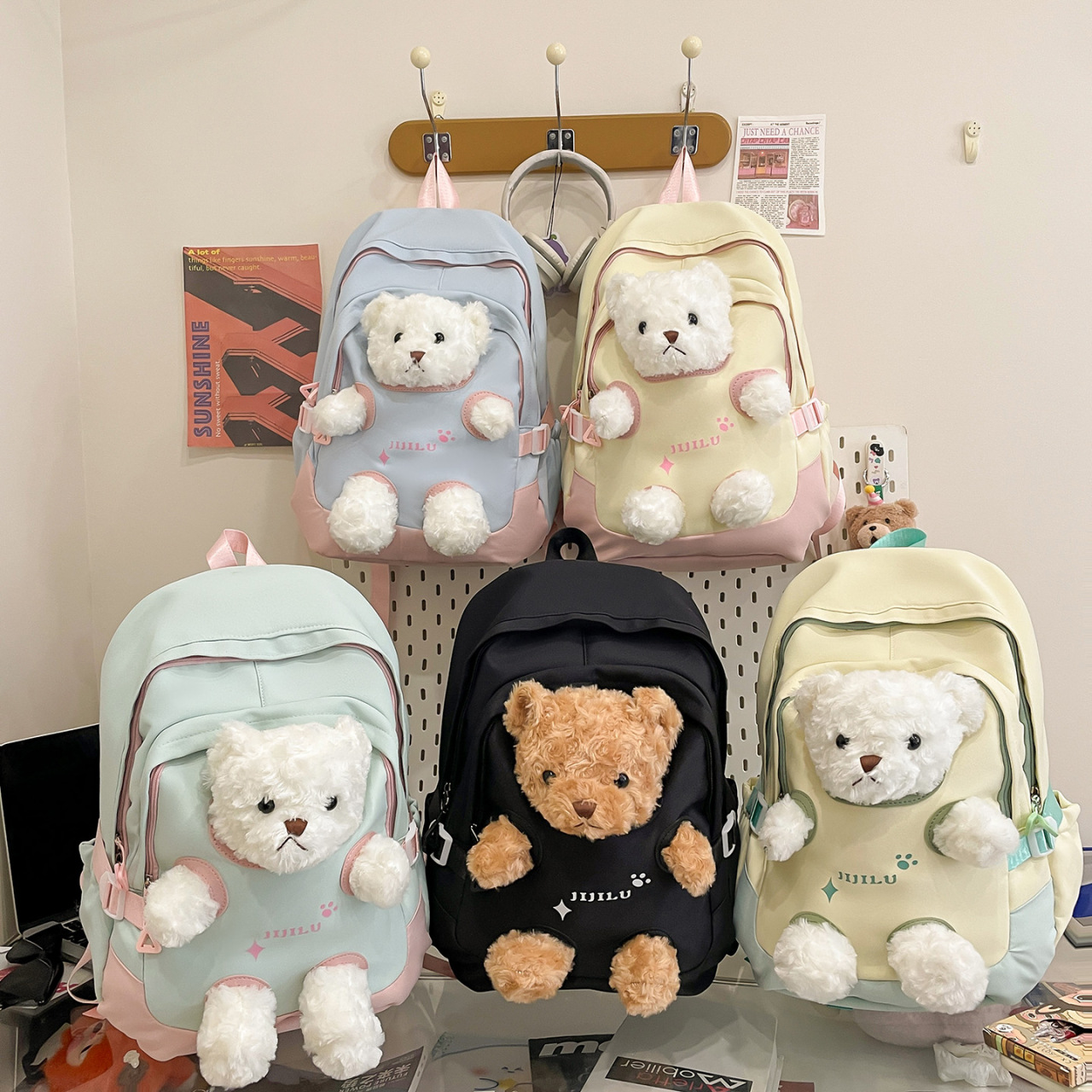새로운 귀여운 곰 배낭, 고급스러운 만화 봉제 인형 학교 가방, 여자 중학생 학교 가방스토어 가기