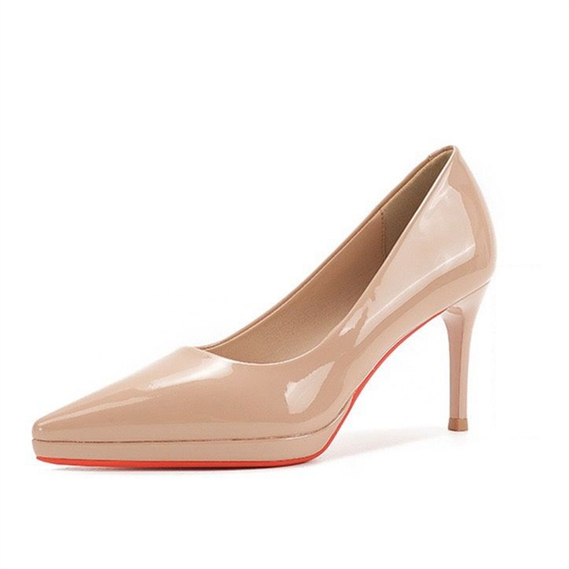 여성을 위한 블랙 레드 솔 방수 플랫폼 하이힐 2025 새로운 스타일의 아름다운 스틸레토 힐과 발이 피곤하지 않은 뾰족한 페이턴트 가죽 신발