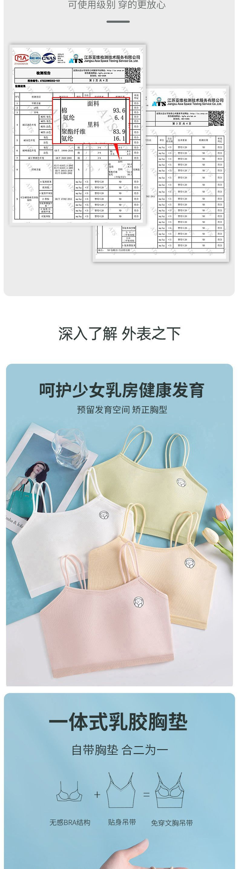 여학생용 속옷 10-18세 중학생 발달기 브라 돌출 방지 일체형 돌출 방지 조끼