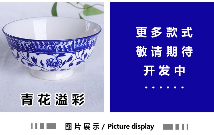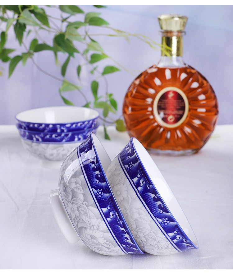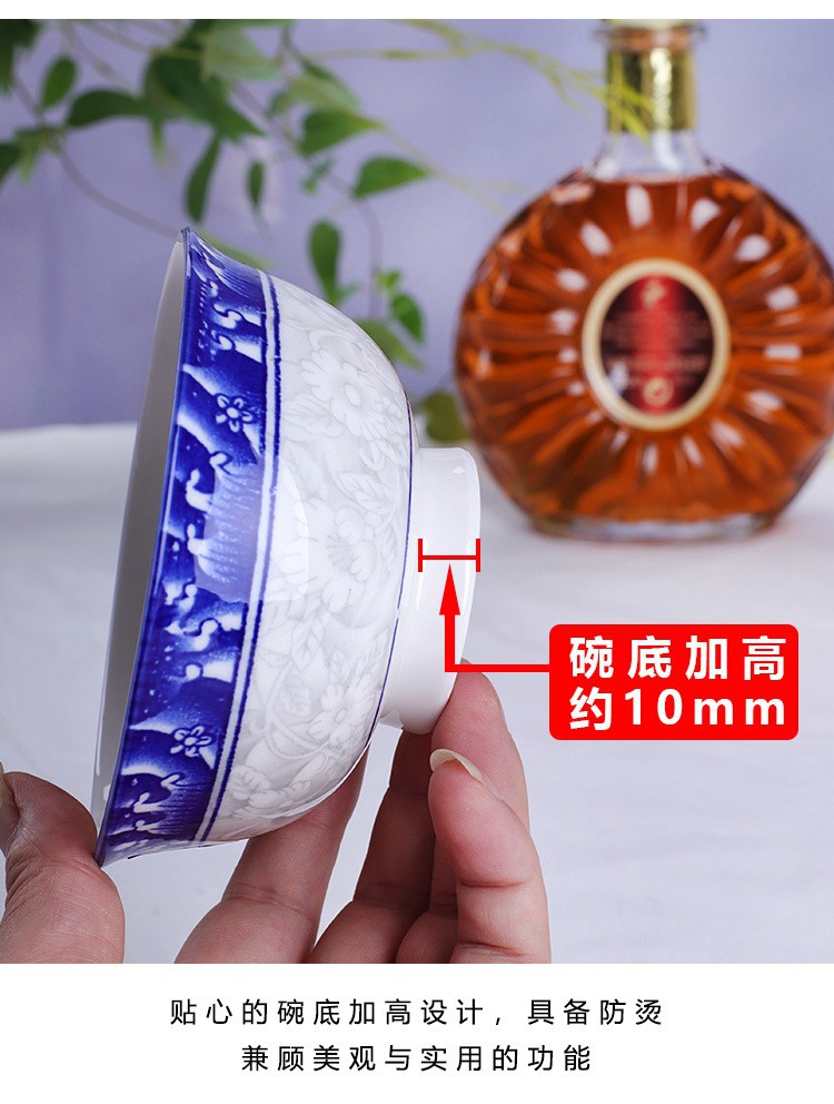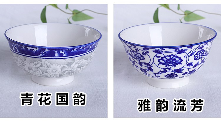 가정용 파란색과 흰색 도자기 그릇 10개 4.5/ 5inch 밥 그릇 화상 방지 새 식사 그릇 Jingdezhen Underglaze 컬러 식기스토어 가기