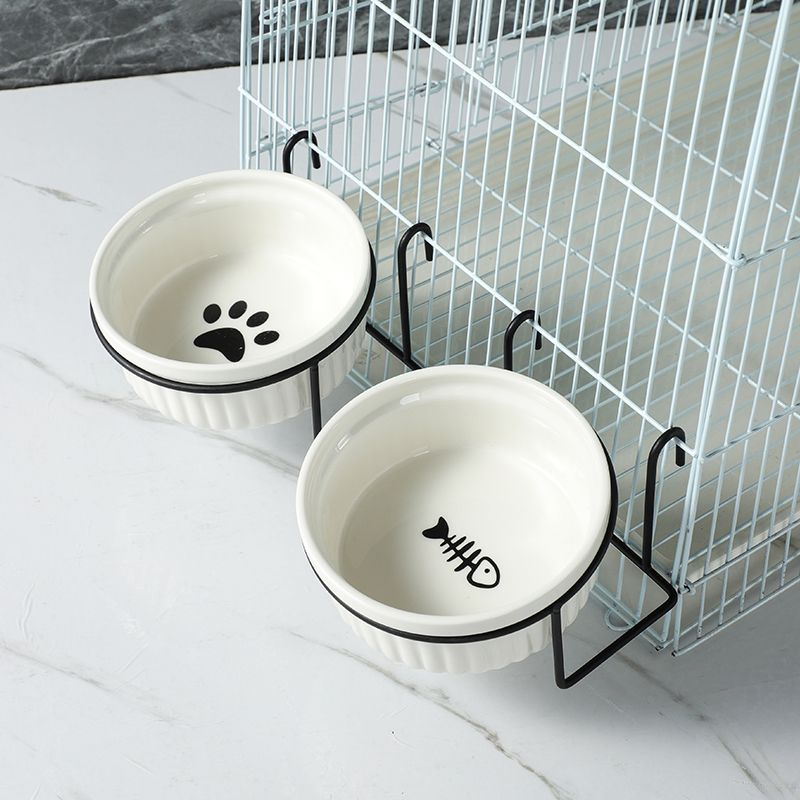 걸이형 고양이 그릇, 케이지 걸이형 고양이 밥 그릇, 작은 토끼 고양이 그릇, 세라믹 고양이 사료 밥 그릇, 걸이형 고양이 그릇, 개 그릇
