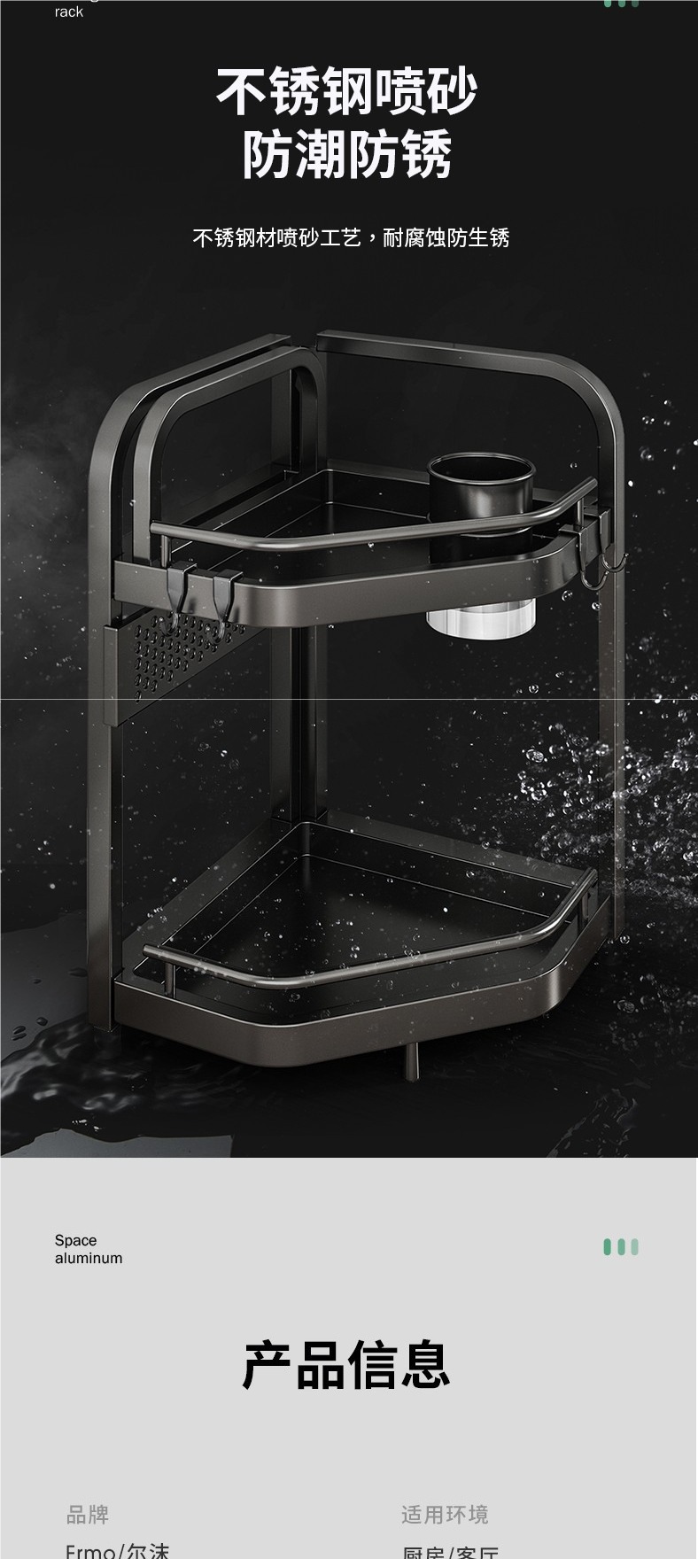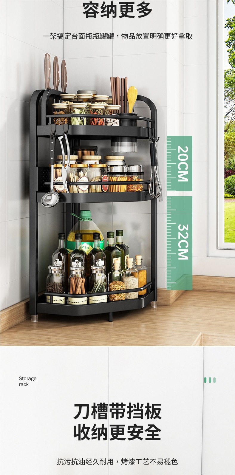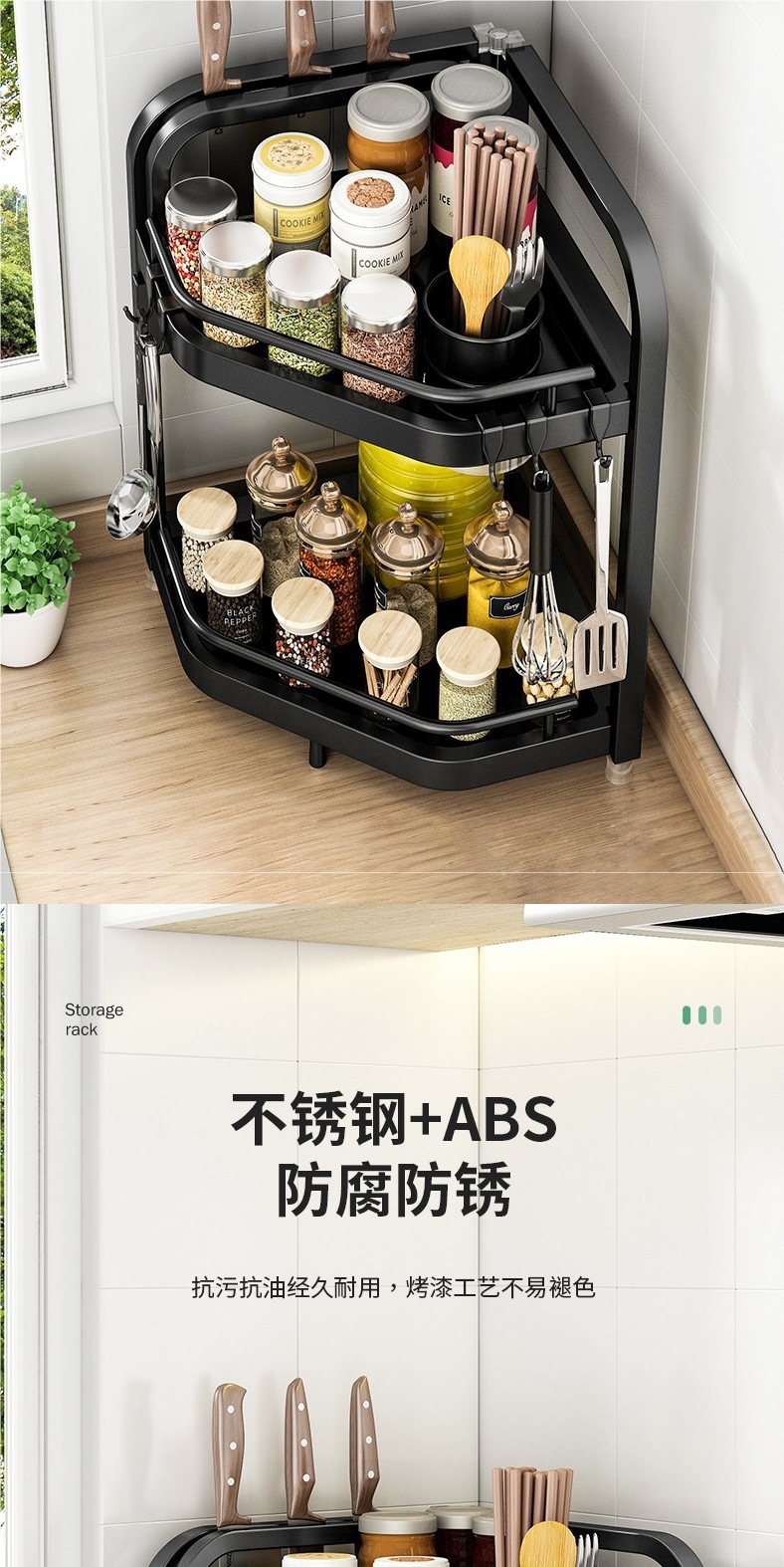 주방 스테인레스 스틸 조미료 보관 랙 바닥에서 천공 없음 조리대 걸이 코너 다층 용품 보관 도매 없음