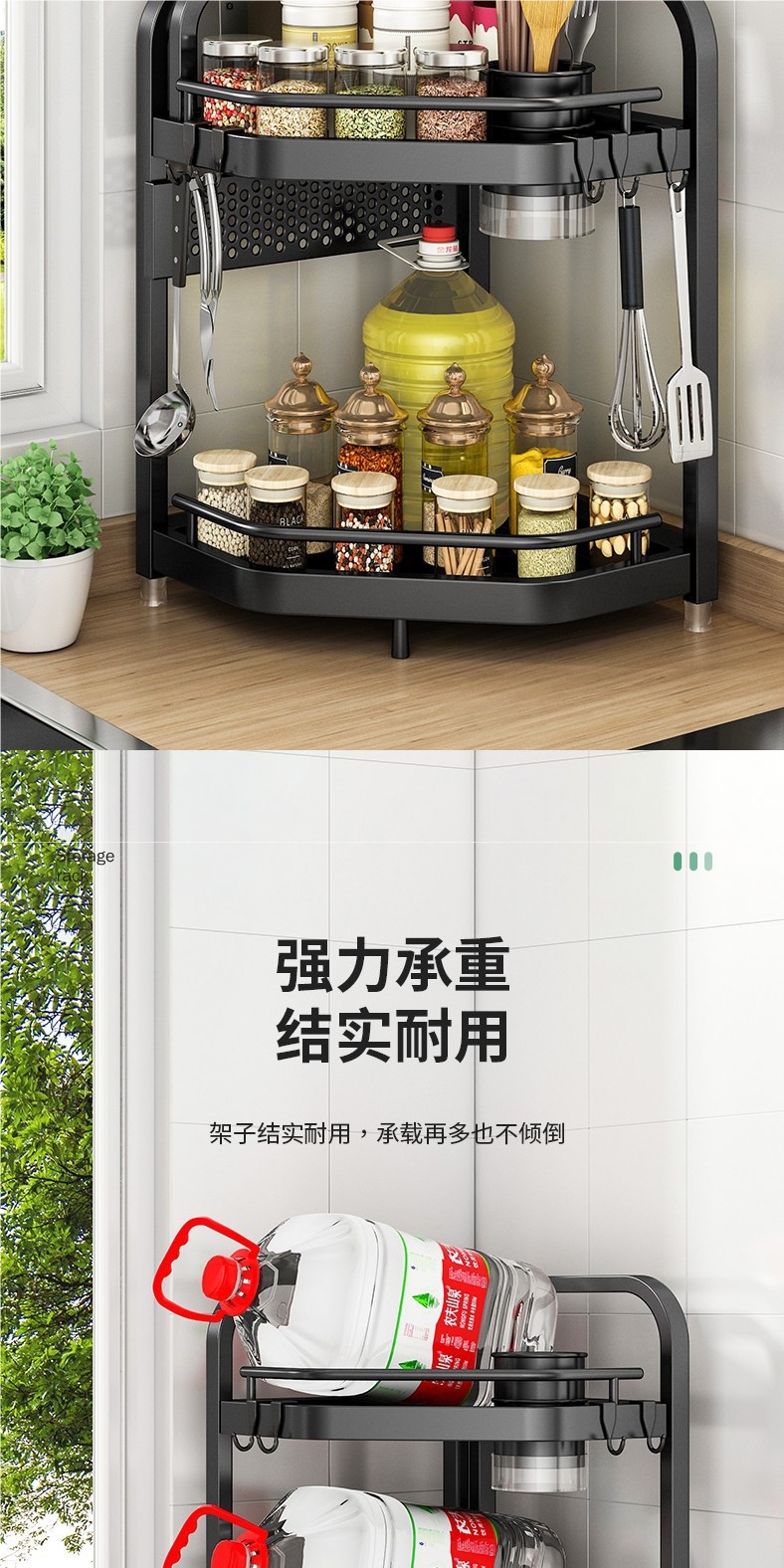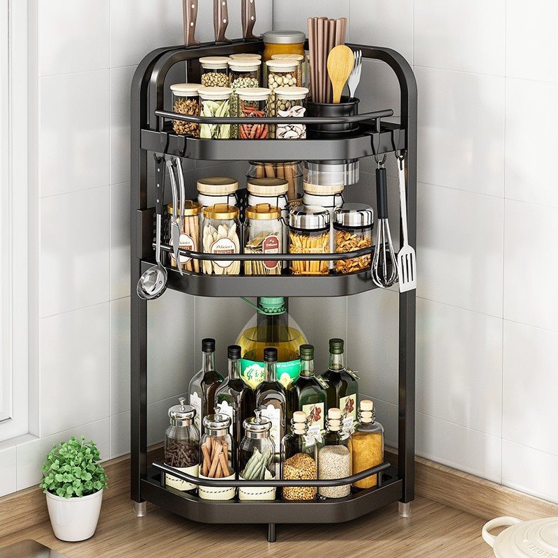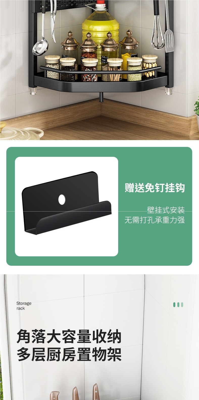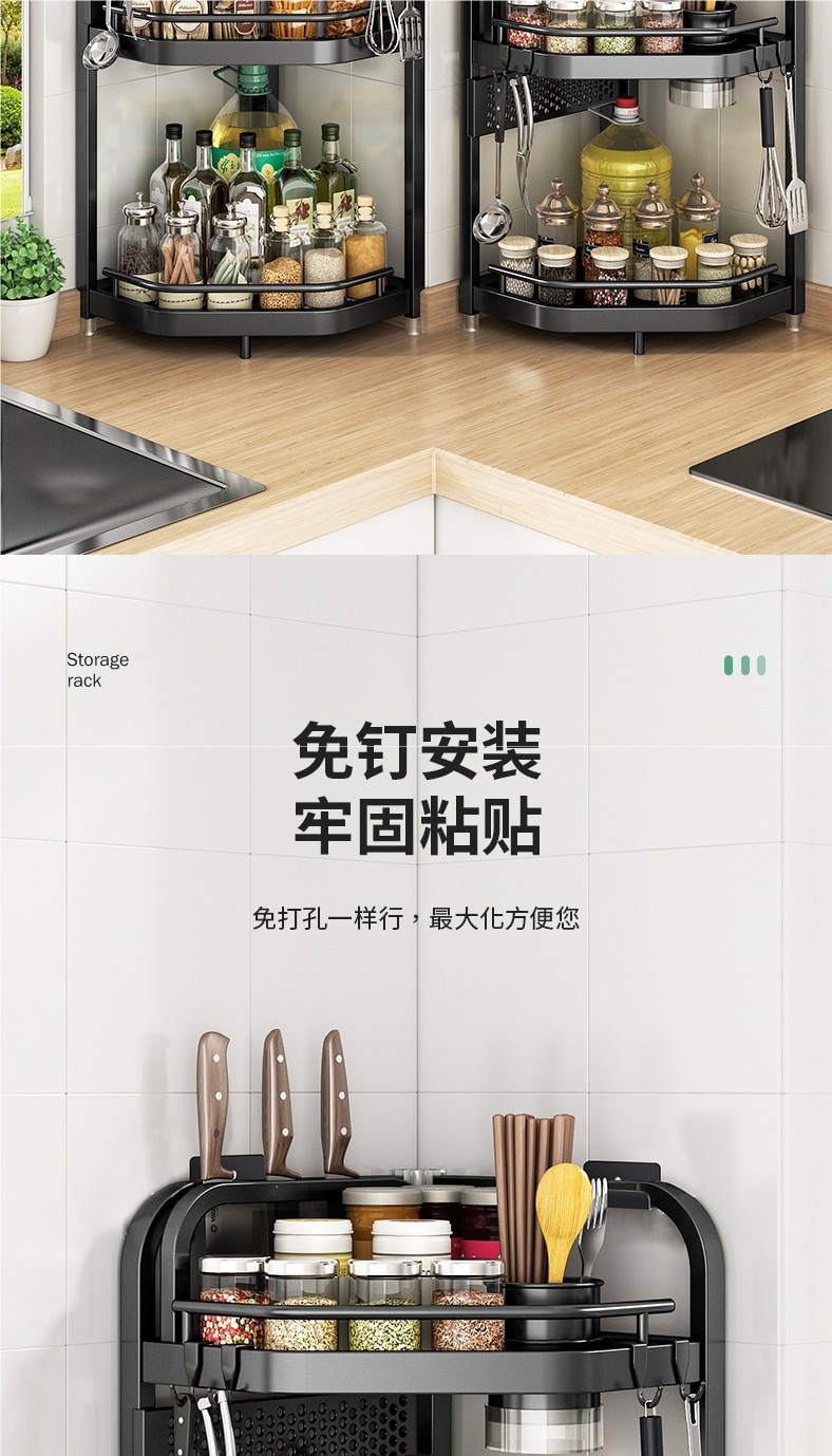 주방 스테인레스 스틸 조미료 보관 랙 바닥에서 천공 없음 조리대 걸이 코너 다층 용품 보관 도매 없음스토어 가기
