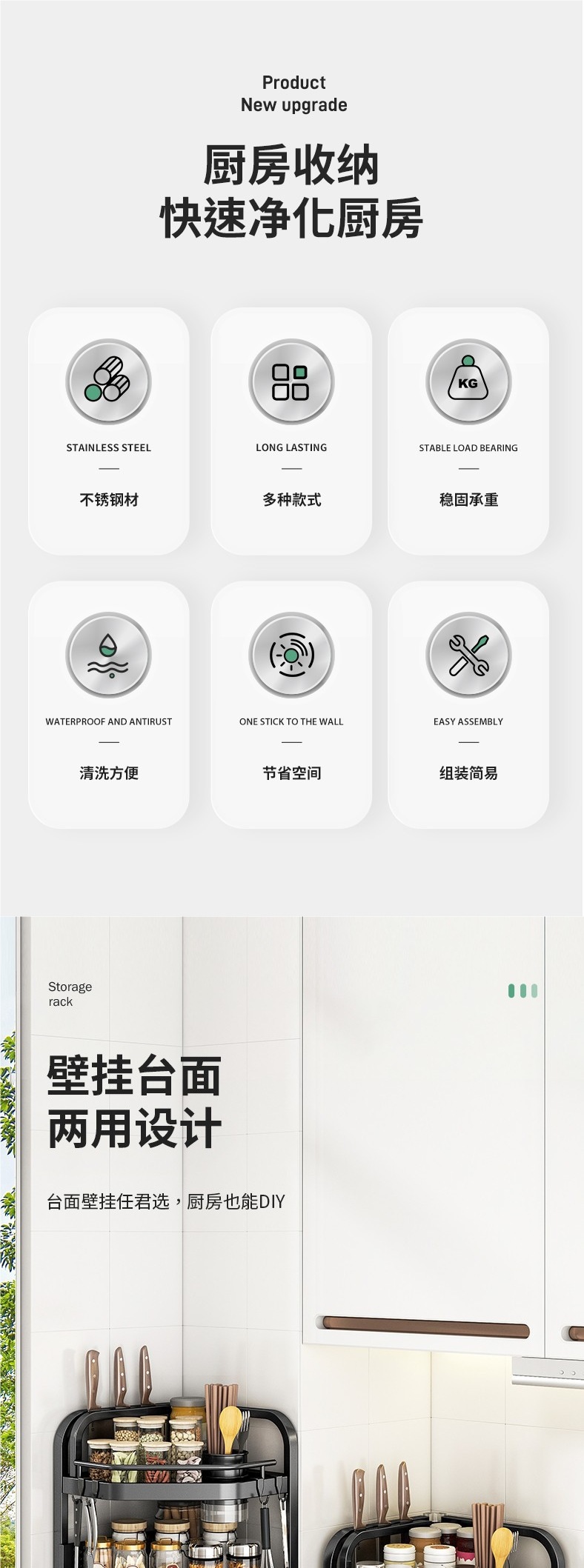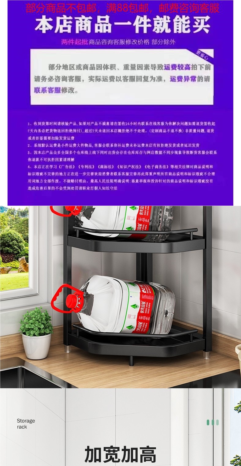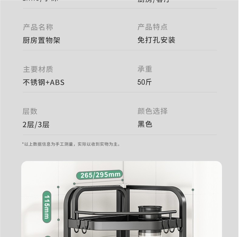 주방 스테인레스 스틸 조미료 보관 랙 바닥에서 천공 없음 조리대 걸이 코너 다층 용품 보관 도매 없음스토어 가기