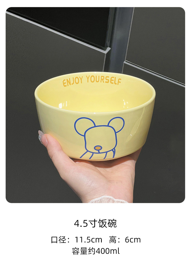 인터넷 연예인 그릇과 접시 세트, 가정용 고급 세라믹 손잡이 그릇, 샐러드 그릇, 창의적이고 귀여운 1인용 및 2인용 식기스토어 가기