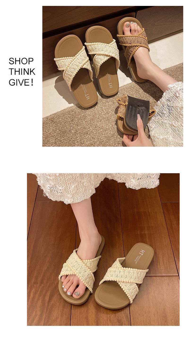 여성용 슬리퍼 여름 2025 요정 새로운 스타일 복고풍 시미아 휴가 플랫 크로스 비치 경량스토어 가기