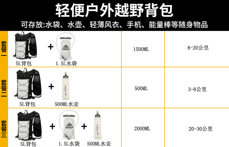 Azela 조끼 가방 마라톤 크로스 컨트리 여행 가방 등산 가방 스포츠 야외 배낭 크로스 보더 사이클링 가방스토어 가기