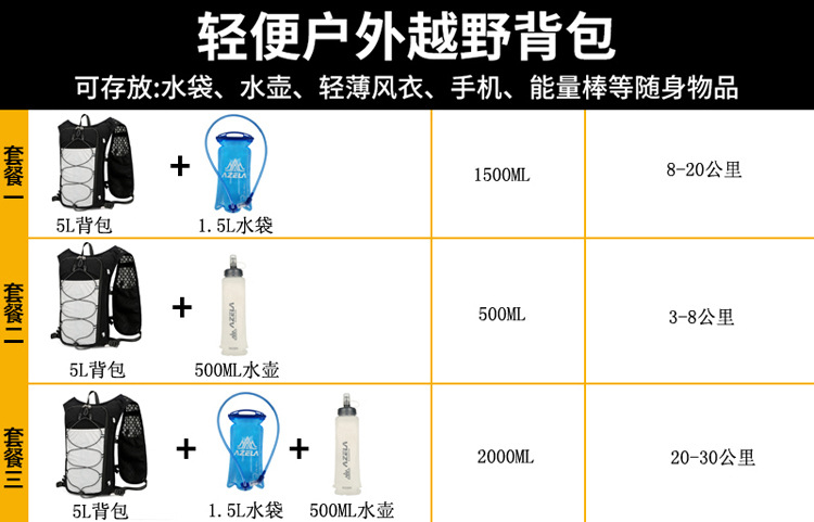 Azela 조끼 가방 마라톤 크로스 컨트리 여행 가방 등산 가방 스포츠 야외 배낭 크로스 보더 사이클링 가방