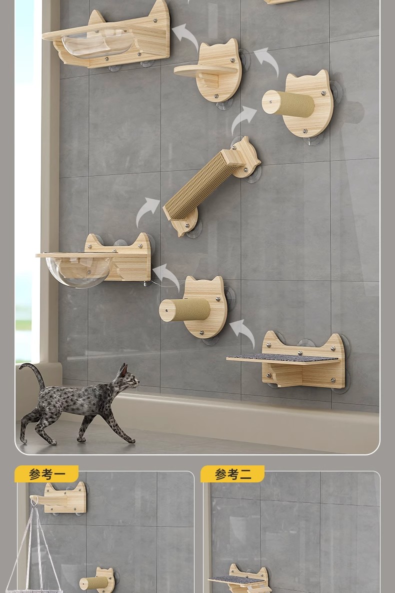 단단한 나무 고양이 클라이밍 프레임 벽걸이형 흡입 컵 발코니 창 유리 벽걸이형 우주 캡슐 해먹 고양이 둥지 점프 플랫폼