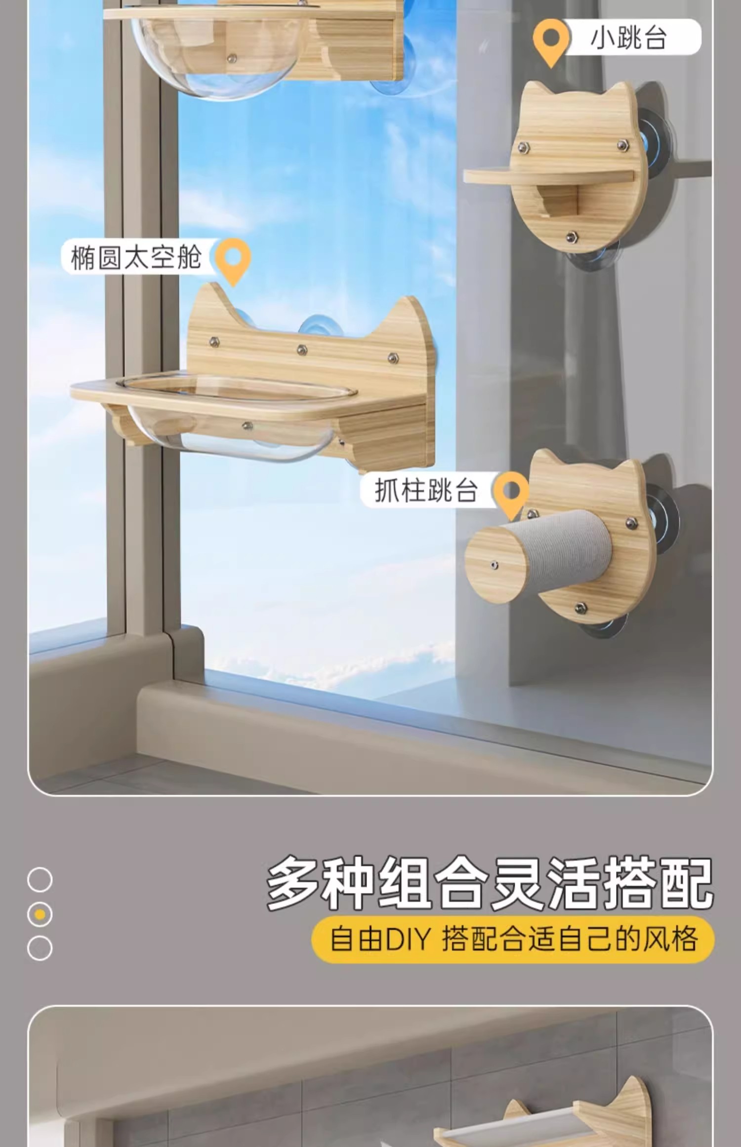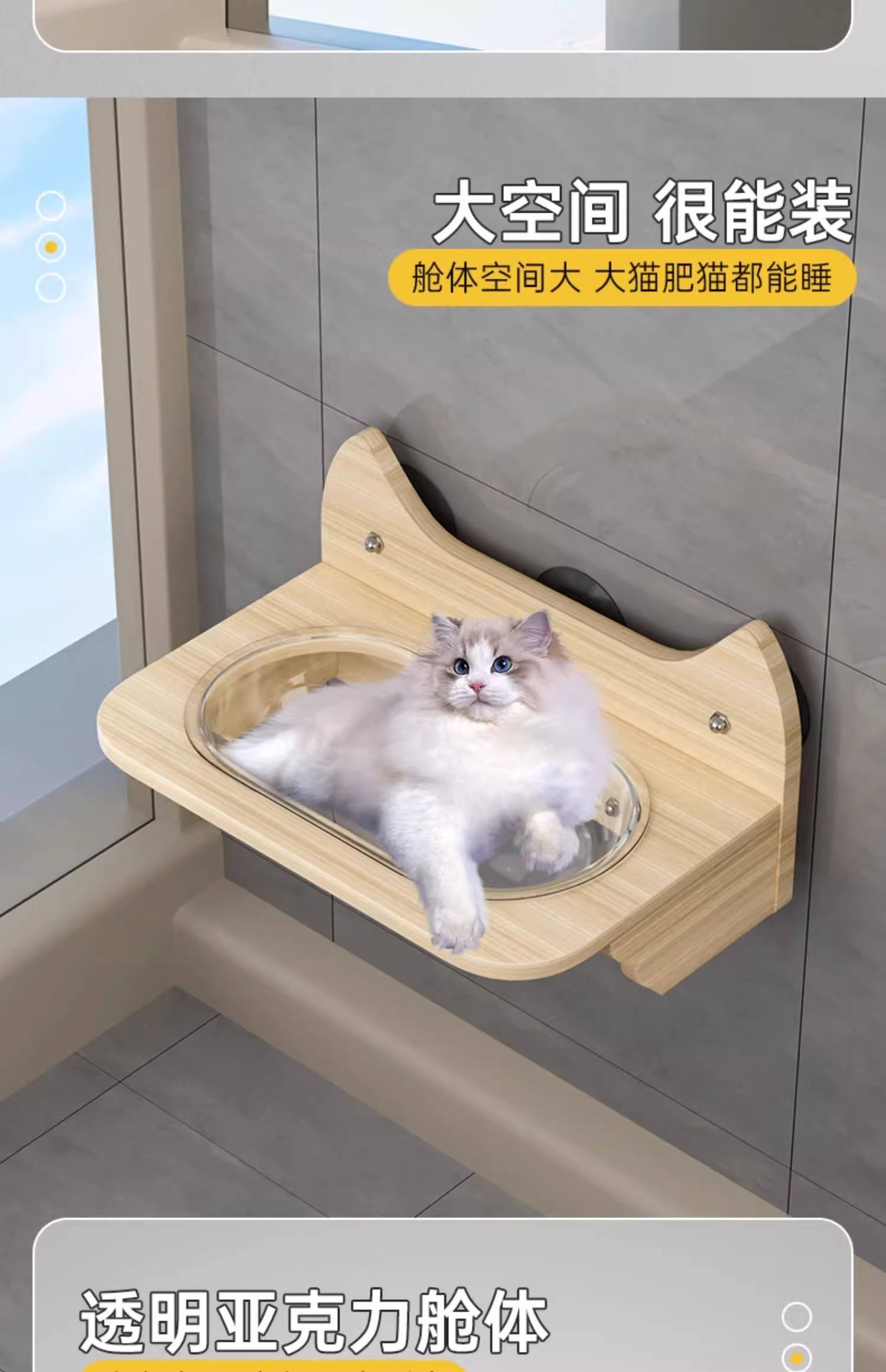 단단한 나무 고양이 클라이밍 프레임 벽걸이형 흡입 컵 발코니 창 유리 벽걸이형 우주 캡슐 해먹 고양이 둥지 점프 플랫폼스토어 가기