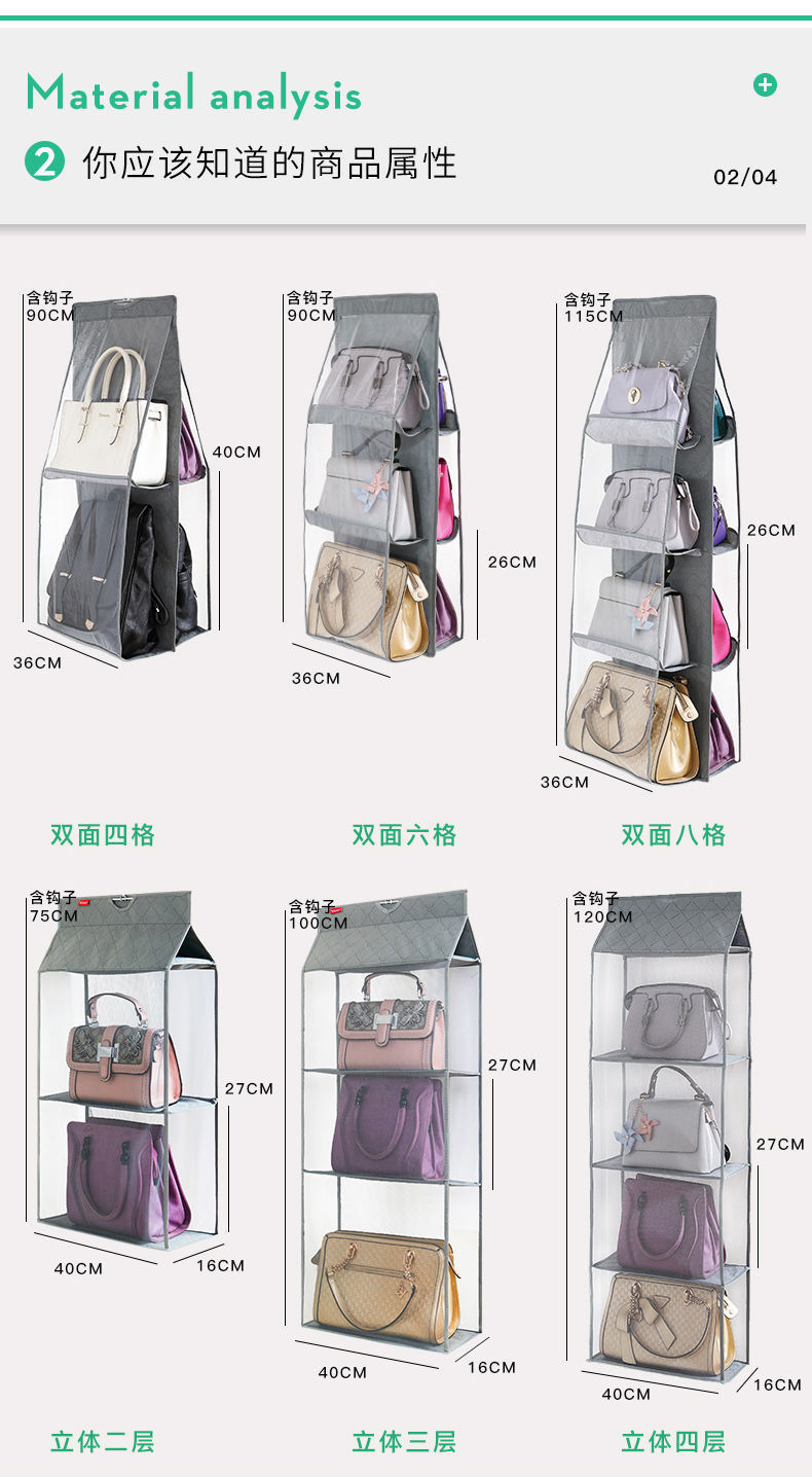 가정용 문 뒤에 옷걸이가 있는 다기능 걸이형 수납 가방 방진 메쉬 투명 다층 양면 가방 걸이 가방스토어 가기