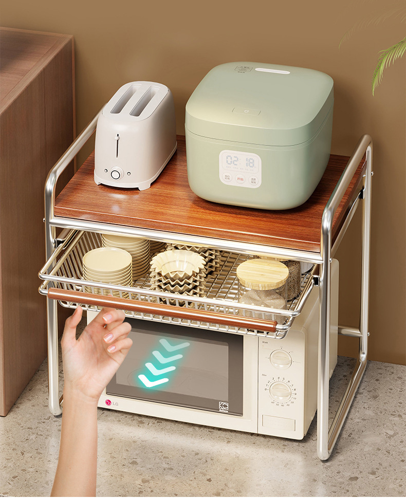중세 스타일 전자 레인지 보관함 주방 조리대 풀아웃 밥솥 보관함 오븐 에어 프라이어 랙스토어 가기
