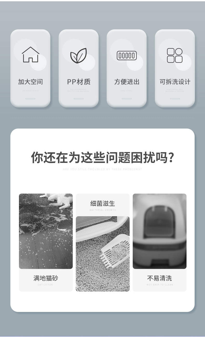 인기 있는 대형 고양이 화장실, 두꺼운 반밀폐형 고양이 화장실, 냄새 차단 및 물 튀김 방지 새끼 고양이 화장실, 고양이 용품스토어 가기