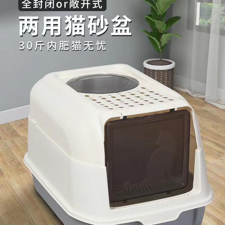 고양이 쓰레기통, 완전 반밀폐형 고양이 쓰레기통, 모래 방지 및 물 튀김 방지, 중형 새끼 고양이 화장실, 고양이 용품