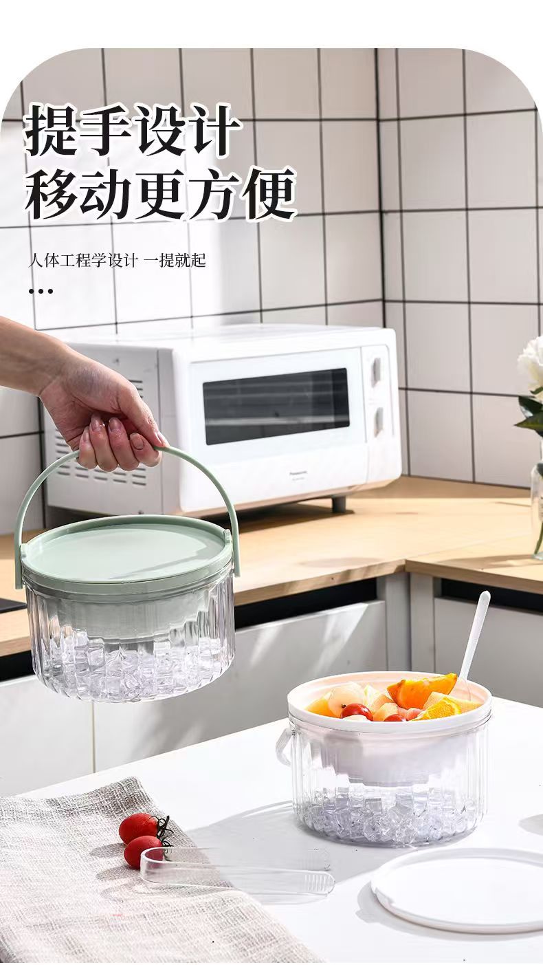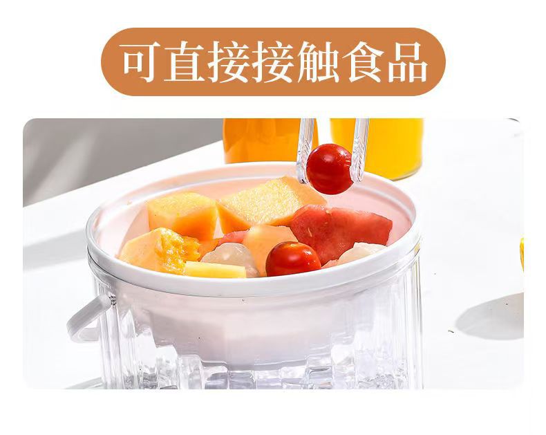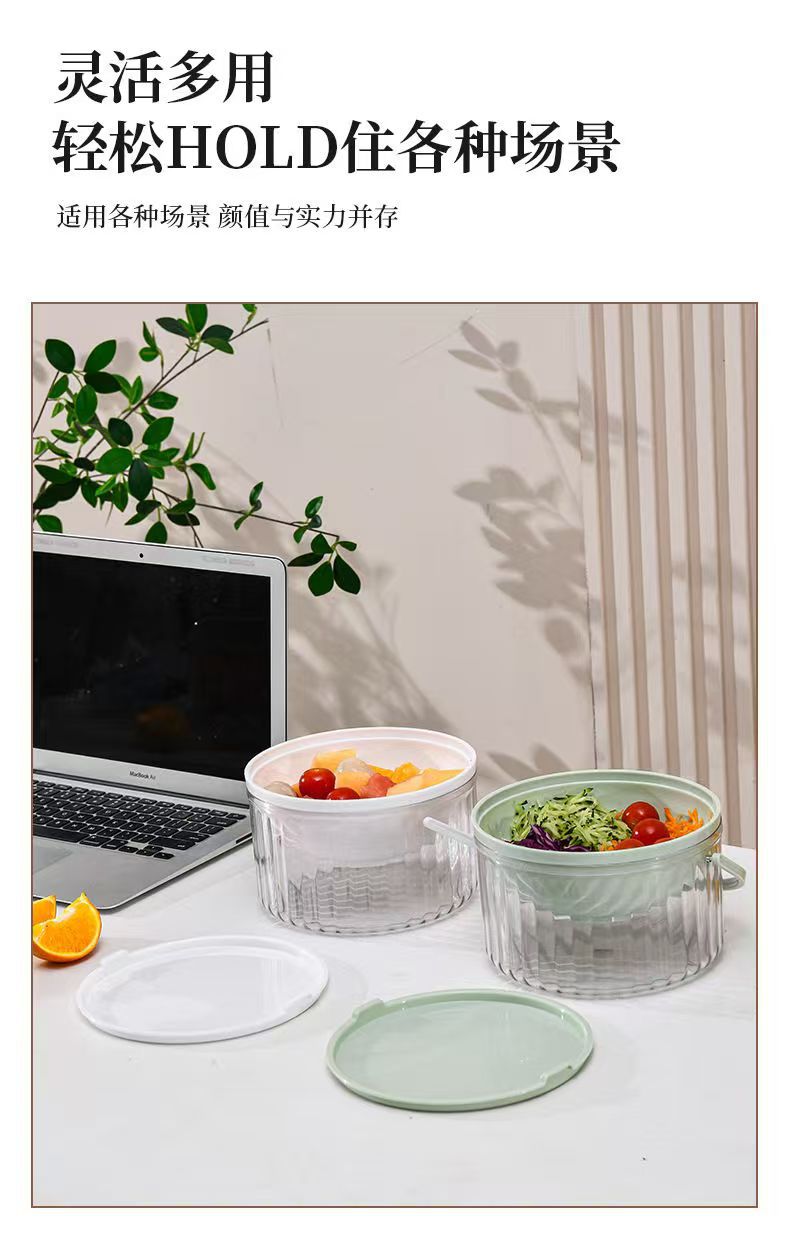 주방수납보존그릇, 이중디자인, 손잡이가 있는 과일샐러드보존그릇, 외출시 휴대가 간편한 수납그릇