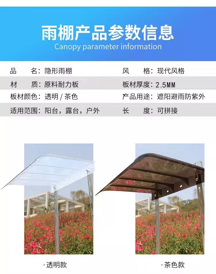 • [상하단 가장자리가 평평한 설치 모델] 투명 컬러 확장 50*50cm 강화 리브 어닝