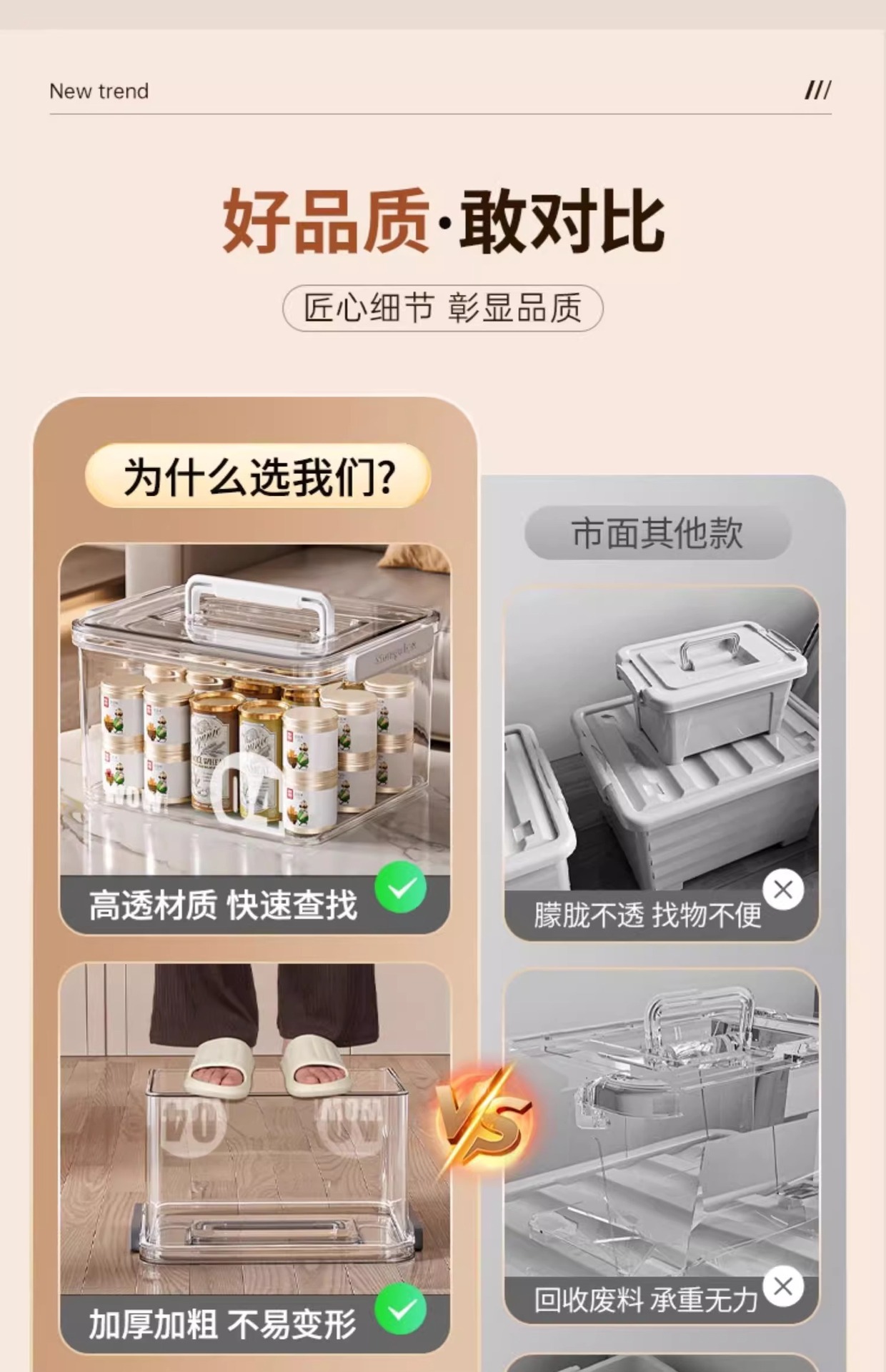가정용 두꺼운 옷, 장난감, 간식 및 도서용 휴대용 투명 보관 상자 대용량 정리 상자 플라스틱 보관 바구니스토어 가기