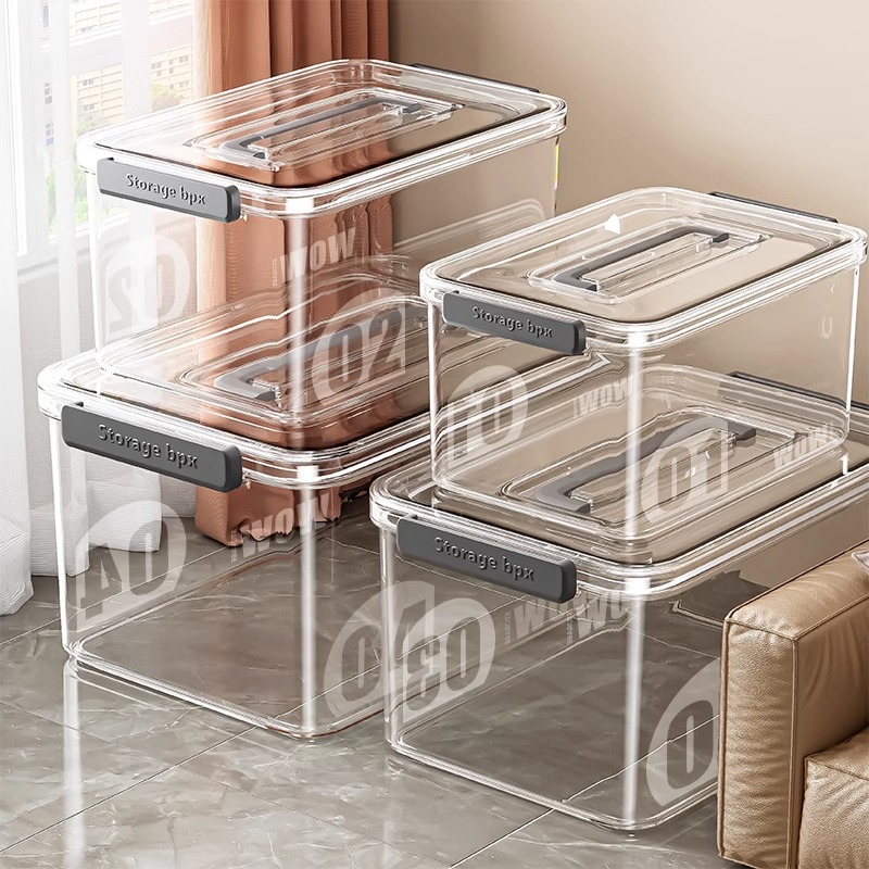 가정용 두꺼운 옷, 장난감, 간식 및 도서용 휴대용 투명 보관 상자 대용량 정리 상자 플라스틱 보관 바구니