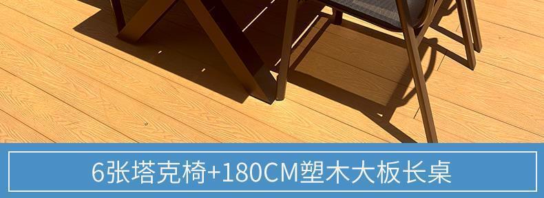 • 180 샴페인 프레임 대형 플라스틱 나무 긴 테이블 + 의자 6개