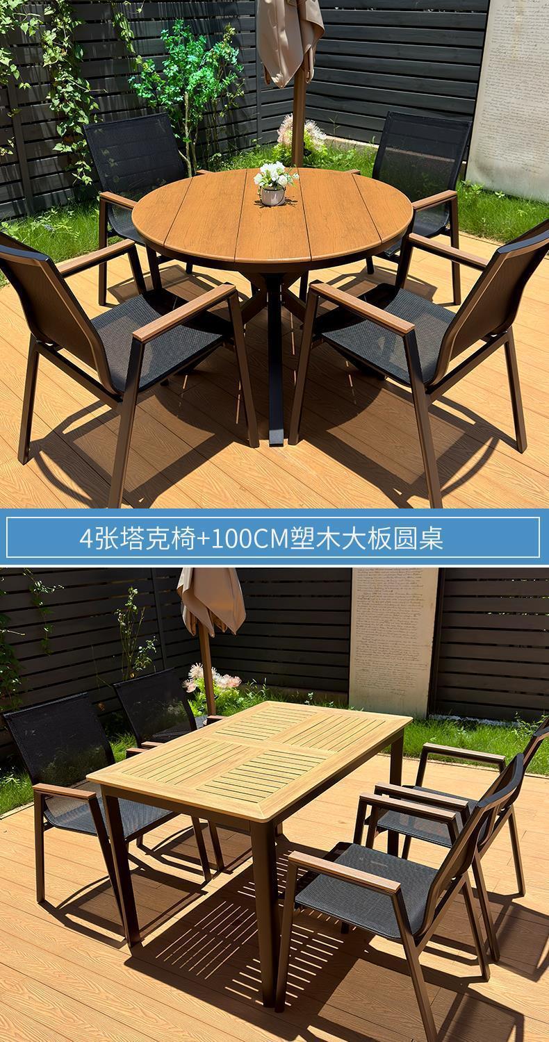 북유럽 야외 테이블과 의자 안뜰 야외 발코니 티 테이블 야외 인터넷 연예인 레저 플라스틱 목재 텔레스코픽 테이블 알루미늄 합금 식탁스토어 가기