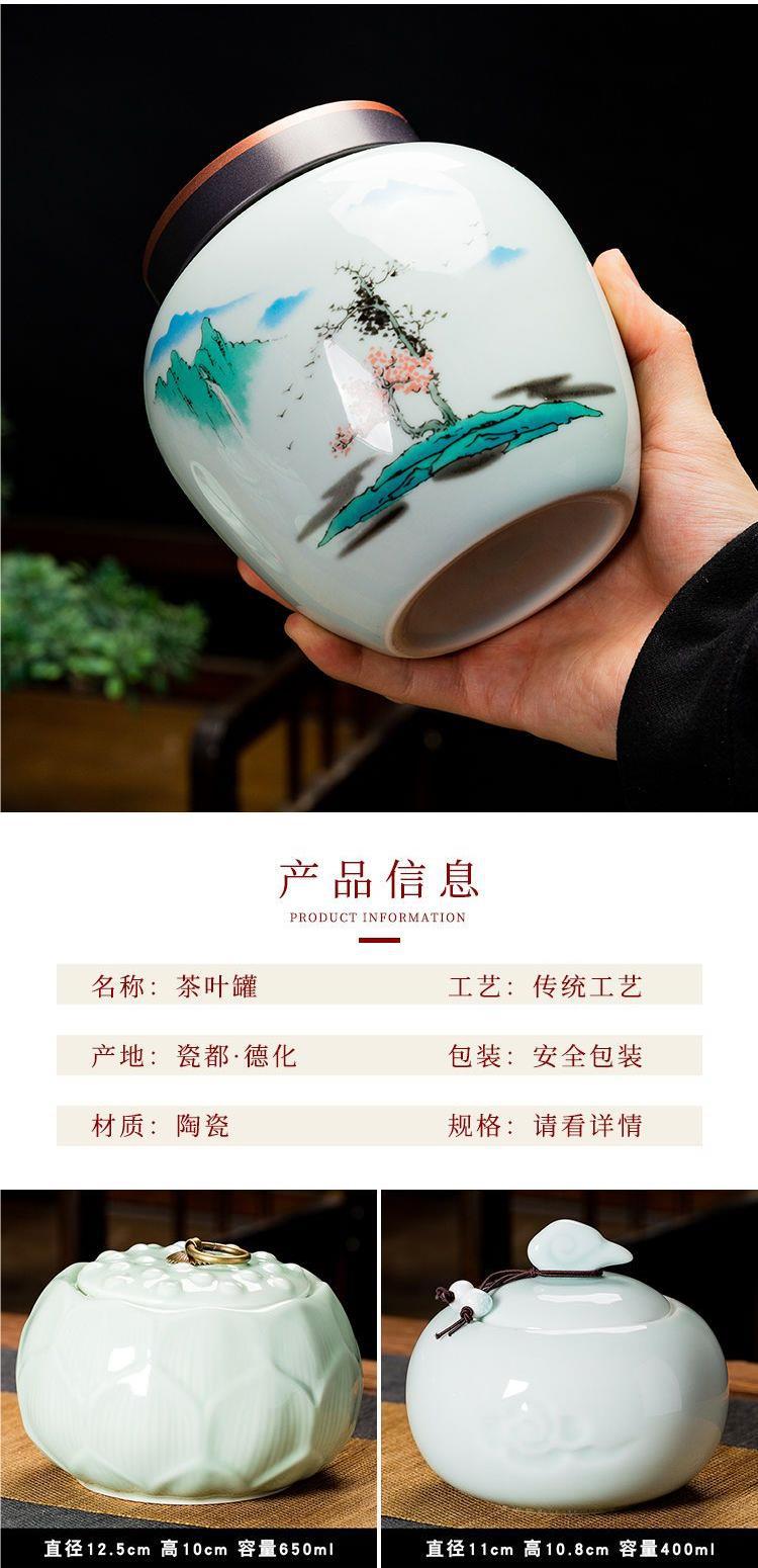 차 항아리 세라믹 대형 가정용 0.5kg 하프 파운드 청자 밀봉 저장 항아리 홍차 녹차 Pu'er Dropshipping스토어 가기