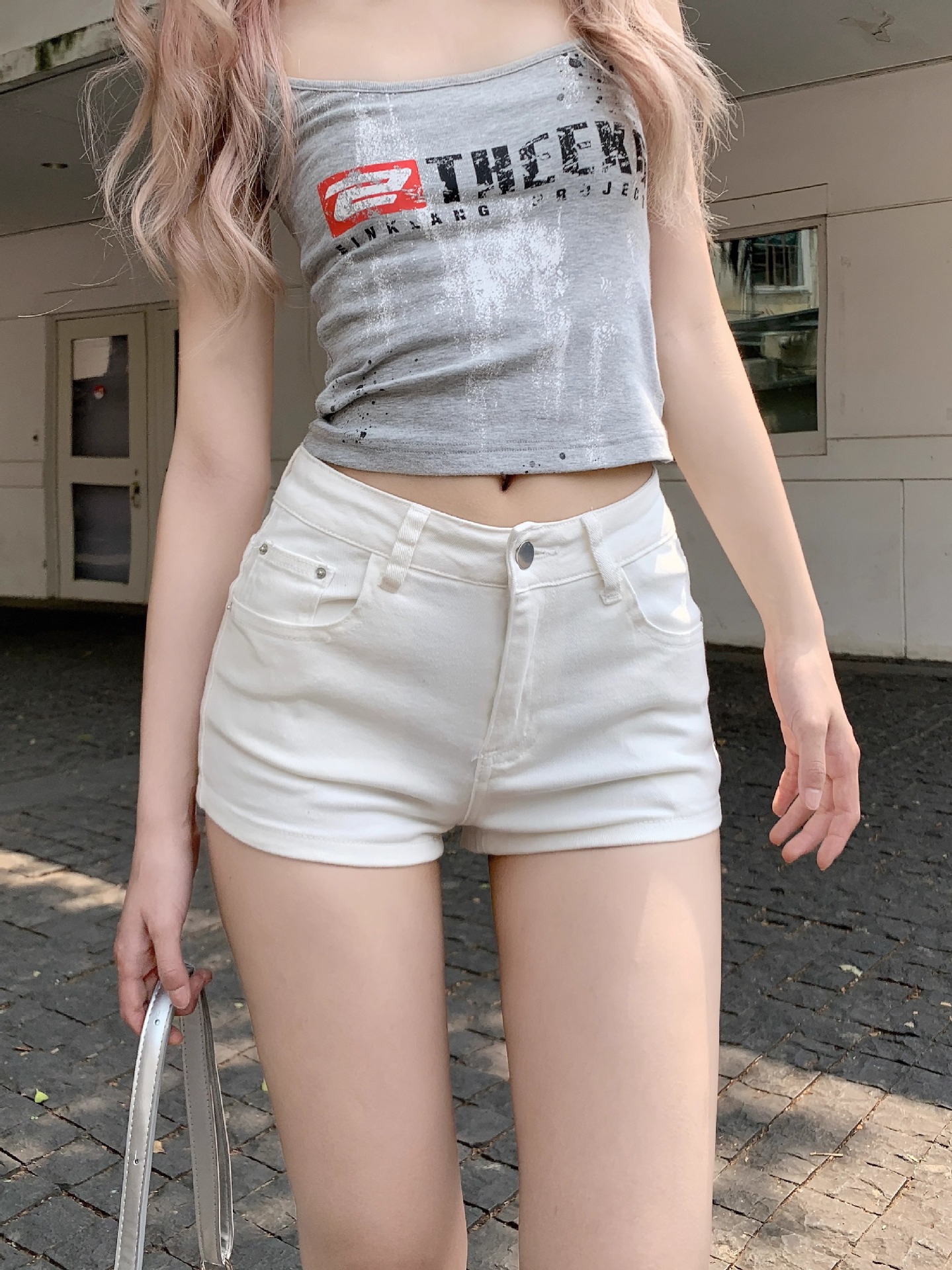 화이트 청바지 여성 여름 스트레이트 팬츠 아메리칸 핫걸 힙허깅 팬츠 다용도 하이웨이스트 슈퍼반바지 A라인 핫팬츠스토어 가기