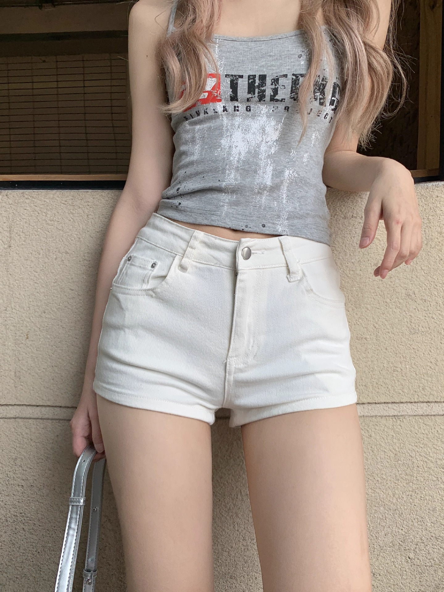 화이트 청바지 여성 여름 스트레이트 팬츠 아메리칸 핫걸 힙허깅 팬츠 다용도 하이웨이스트 슈퍼반바지 A라인 핫팬츠
