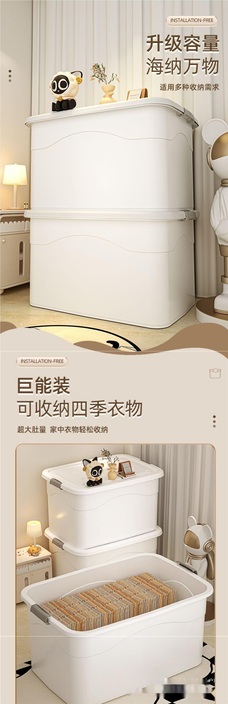2025년 옷 정리용 초대형 수납함, 두꺼운 수납함, 학생용 가정용 플라스틱 상자 정리함