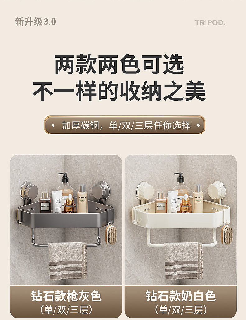 소스 공장 욕실 흡입 컵 삼각형 선반 욕실 막대가있는 펀치없는 벽걸이 형 욕실 코너 선반스토어 가기