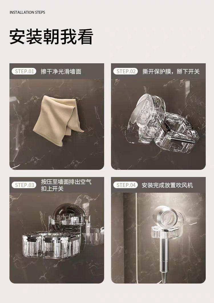 욕실 조명 고급 흡입 컵, 펀치 없음, 회전식 벽걸이형 게으른 헤어드라이어 보관함, 가정용 접착 후크 없음