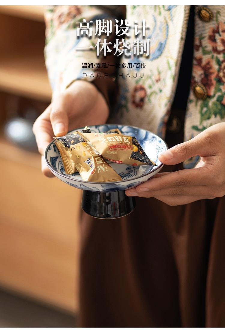 높은 접시 과일 접시 복고풍 중국 과자 접시 작은 과일 접시 높은 차 접시 디저트 세라믹 접시스토어 가기