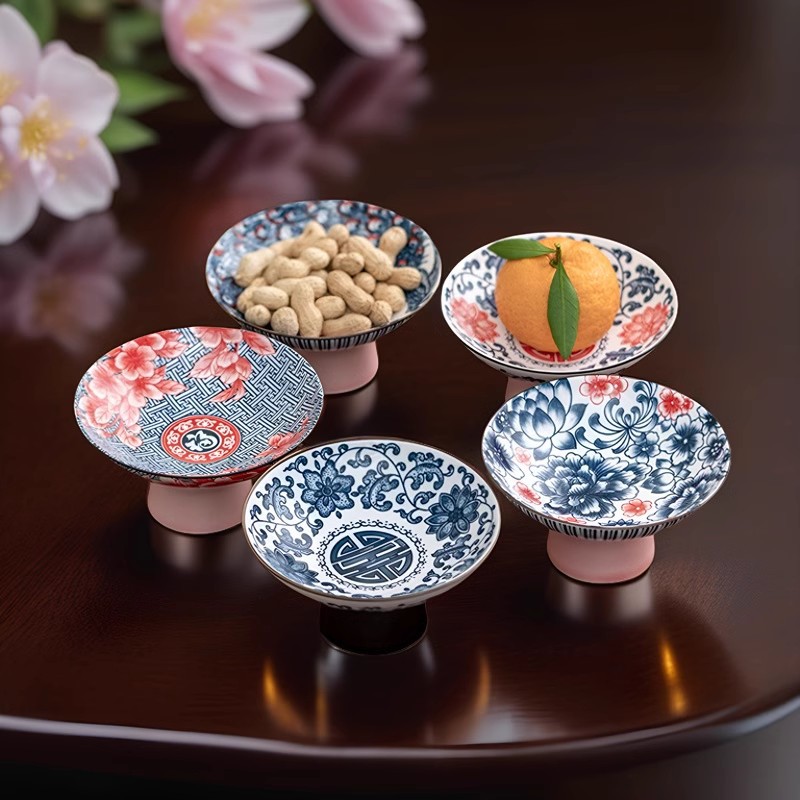 높은 접시 과일 접시 복고풍 중국 과자 접시 작은 과일 접시 높은 차 접시 디저트 세라믹 접시