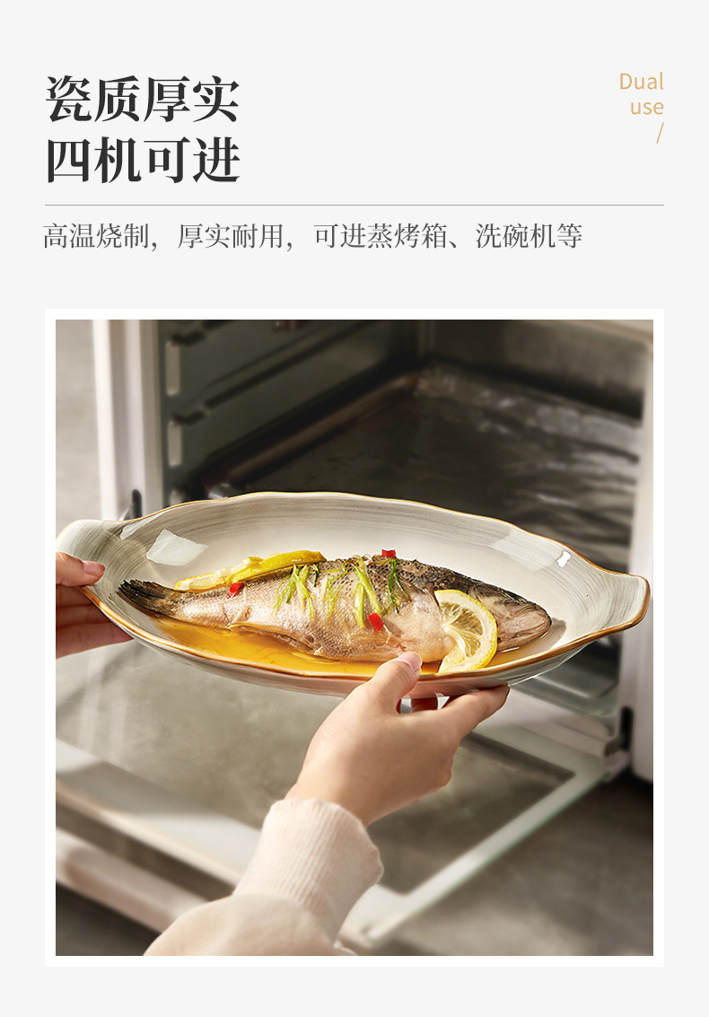 가정용 세라믹 생선 접시 2024 새로운 스타일의 생선 찜 접시 대형 생선 접시 양이 생선 그릇 생선 그릇스토어 가기